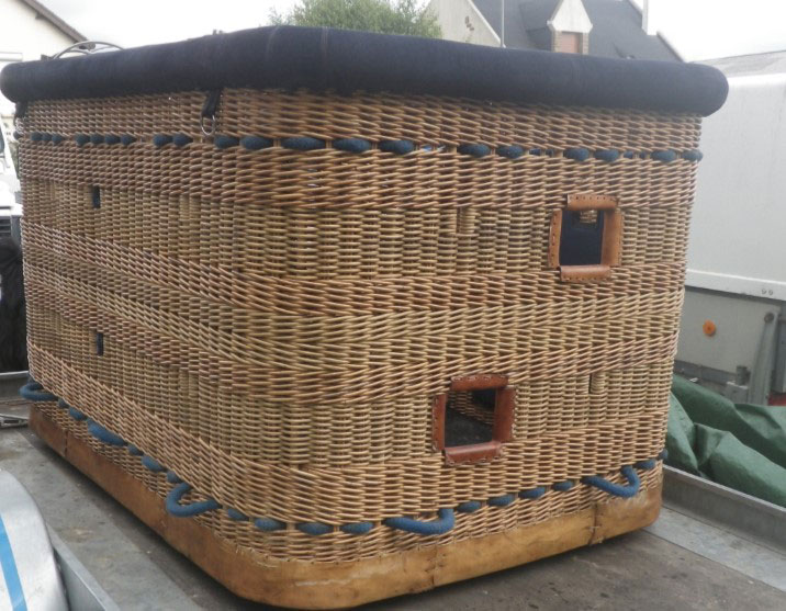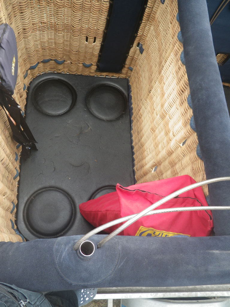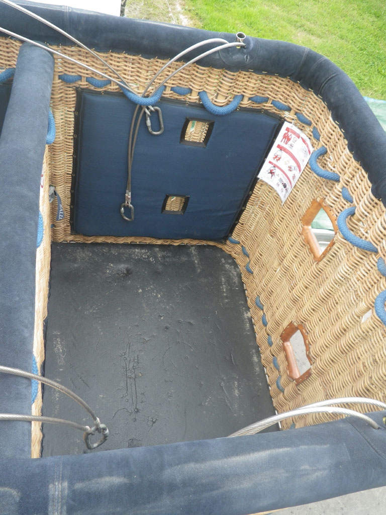 Ultramagic C6 basket, single (removable) partition, built 2011, 100 hrs. 1.80m x 1.30m. Navy suede top rim, side wall padding, pilot restraint harness, drop line (50m).