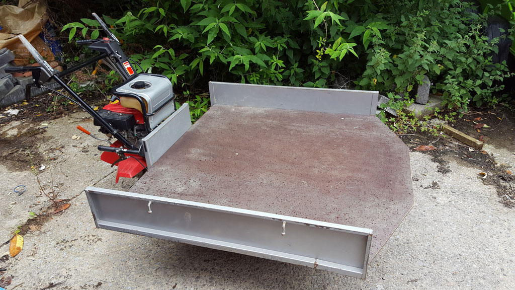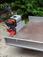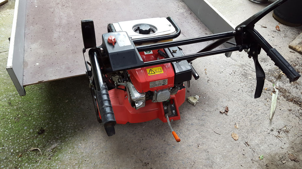 Caterpillar-track transporter with tilting bed, 1.32m x 1.36m. Easy to use, 2 forward gears and one reverse gear. In very good condition, recently serviced. Caterpillar tracks changed three years ago, with only light use since. Has been used to transport a special shape weighing in excess of 400 kg, but now surplus to requirements.