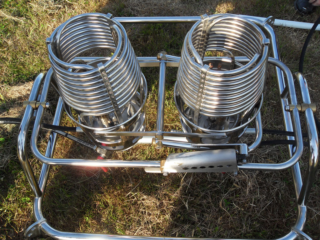 F-HETC, Ultramagic T-150, built 2011, 100 hrs. 100% hyperlast, turning vents, rapid deflation system. Ultramagic C6 basket, single (removable) partition, built 2011, 100 hrs. 1.80m x 1.30m. Navy suede top rim, side wall padding, pilot restraint harness, drop line (50m). Double Ultramagic Mk21 burner, built 2011, 100 hrs., in height adjustable frame, vapour pilot lights, REGO fittings. In perfect condition. ARC valid until May 2016.