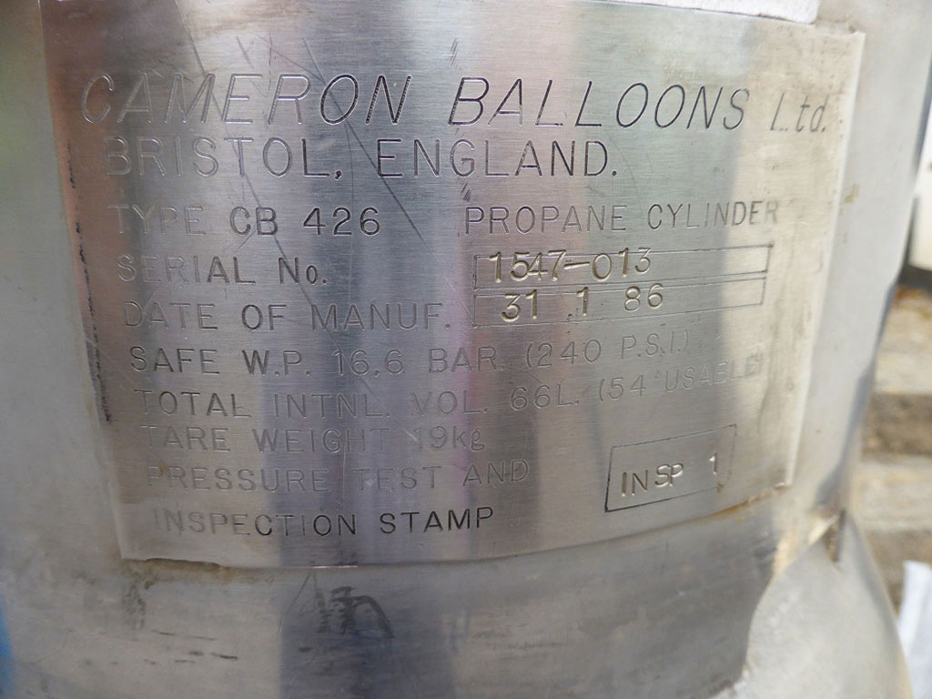 Cameron CB426 cylinder, built 1986, Master, REGO fitting, light blue cover. PPT/INT expired, PRV valid until 05/2022.