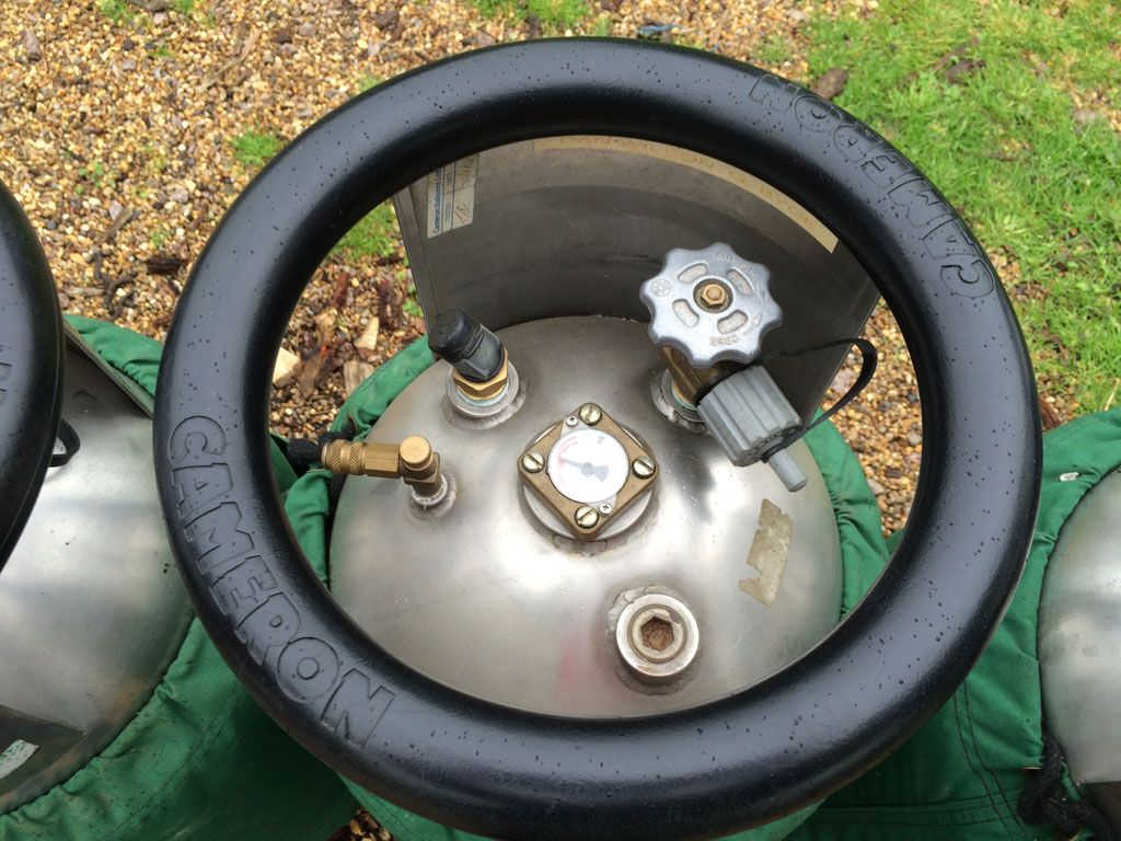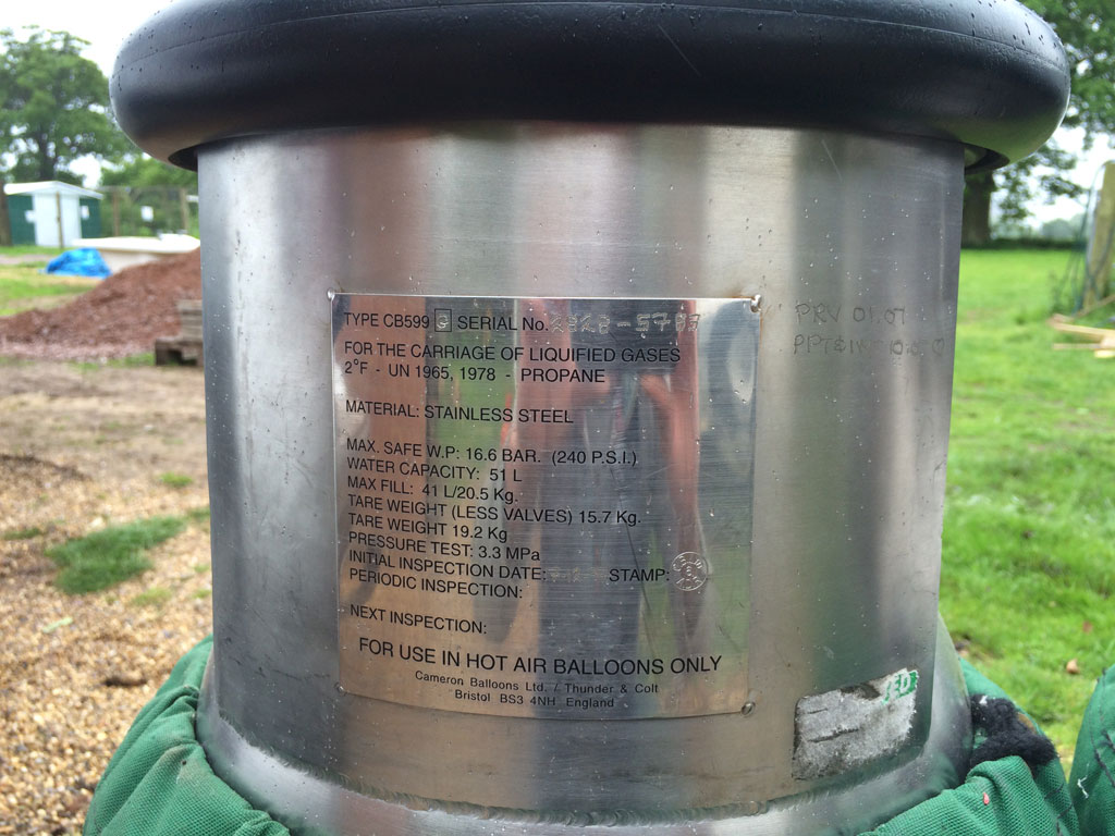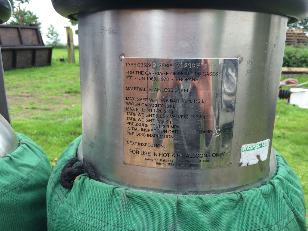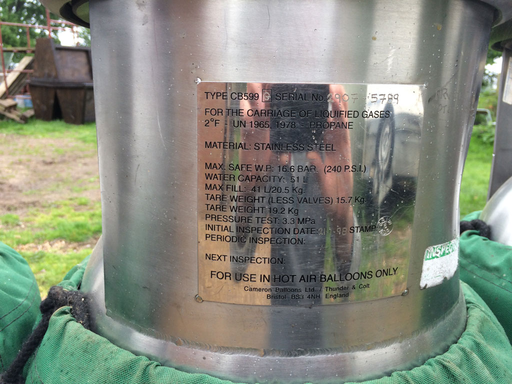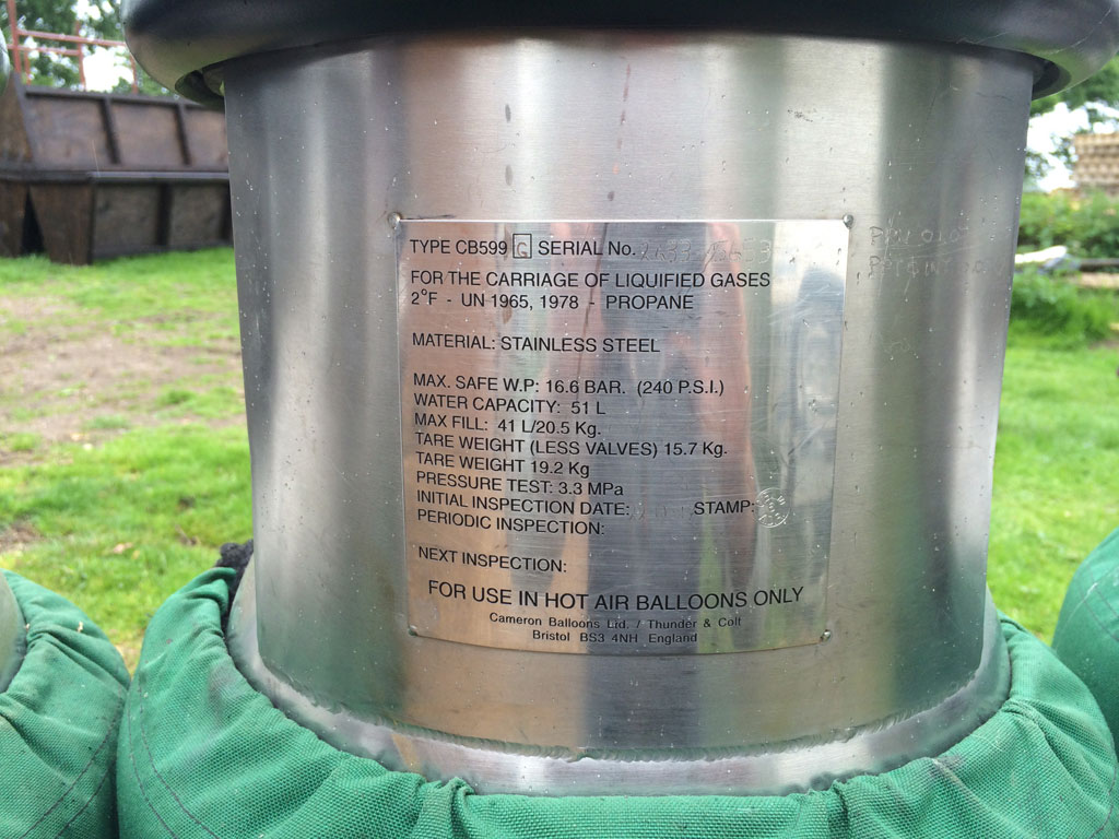 4x Cameron CB599 cylinders, built 1998. All slave. Usable volume 41 liter. REGO fitting, rubber top ring, fuel safe coupling on bleed valves. PRV/PPT/INT valid until 2017, but will be completed on sale. Comes with EASA Form 1 if required. All in immaculate condition, no dents.