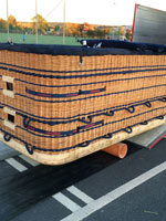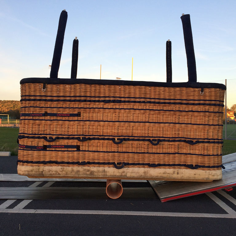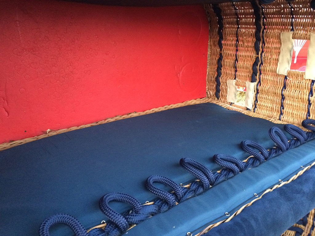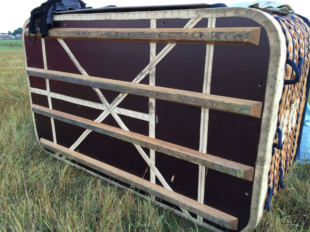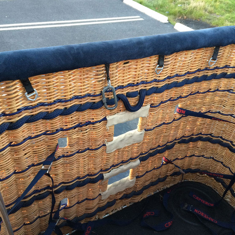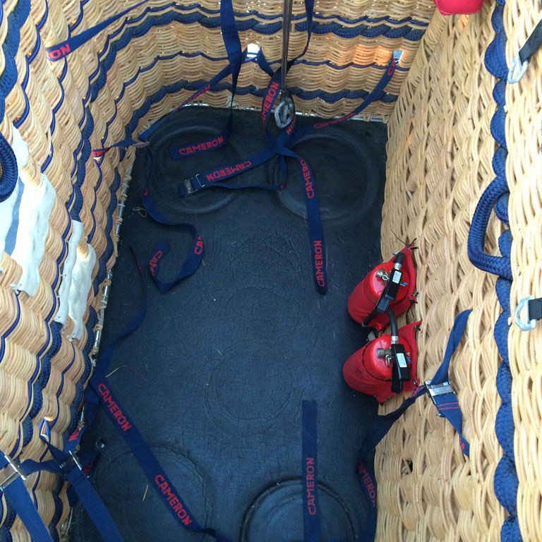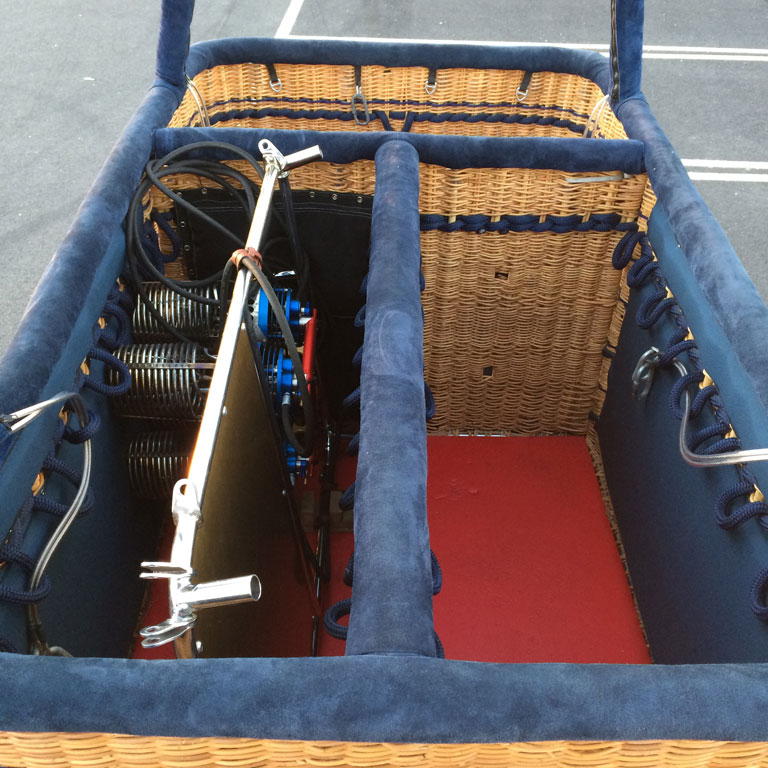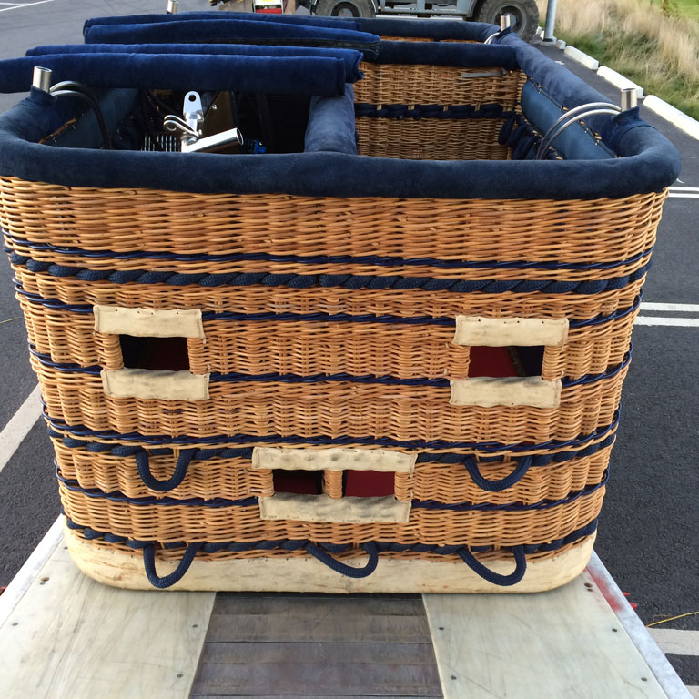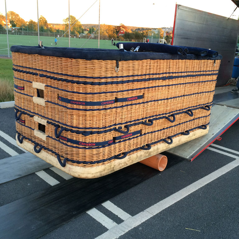 Cameron 210 T solid floor basket, CB3314, built 2007, 75 hrs. 2.57m x 1.49m. Navy suede top rim, side wall padding, cushion floor in passengers and pilot compartments. Extra row of rope handles. Flown in nice weather only, no drag landings. In as new condition. Always stored indoors or in closed trailer. Last flown in September 2016, pictures are recent. Burner is not included. Black PEHD sliders included. Comes with fresh EASA Form 1. Immediately available.