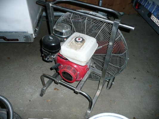 8.0 HP inflation fan Honda. Needs repairs on protection frame, needs new prop.