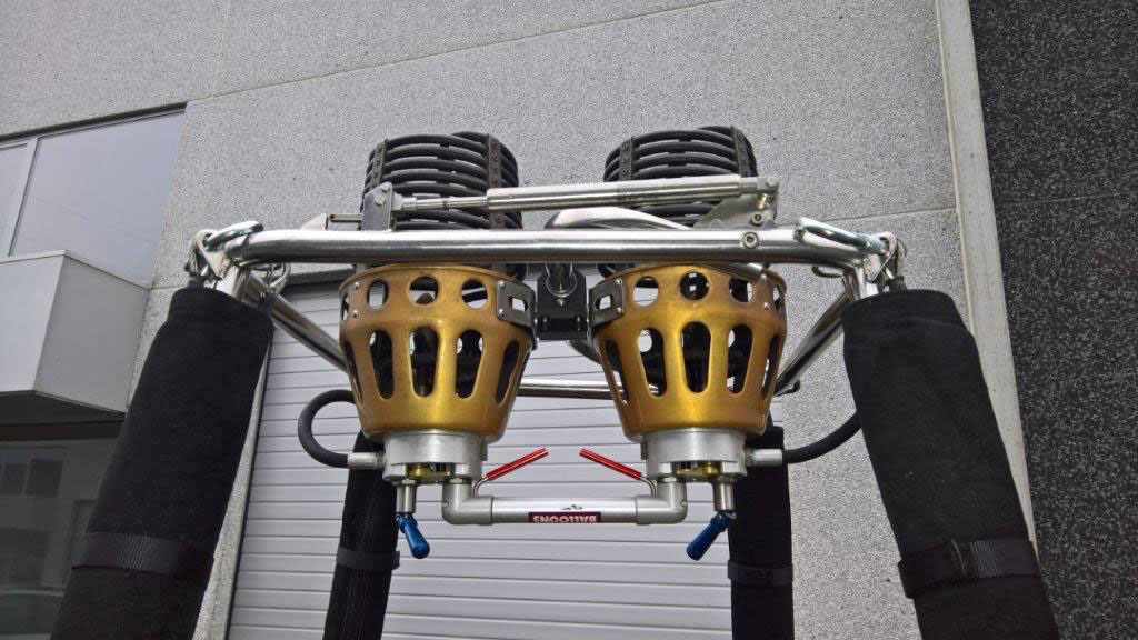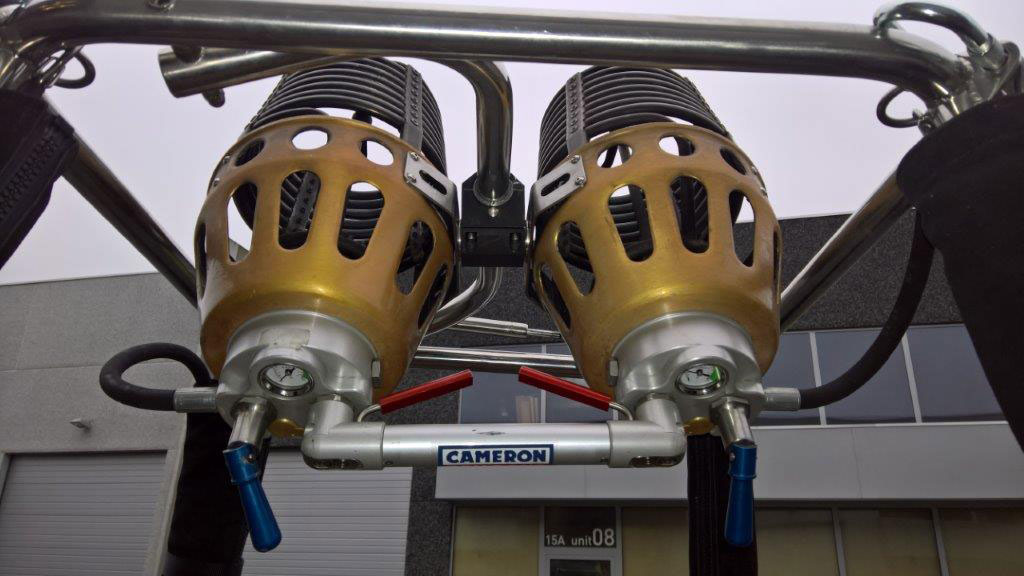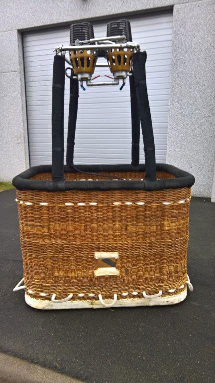 Cameron 105/120 basket, CB8019, solid floor, flat top, high spec. Completely straight. Black suede top rim, fire extinguisher, 4 new karabiners. Cameron CB8720 double Stratus burner, liquid pilot lights. pneumatic height adjustable frame with fixed corners. Burners fully serviced, new hoses installed, new Cameron high flow REGO connectors, 1 new piezo. In great condition. Comes with fresh EASA Form 1. Immediately available.