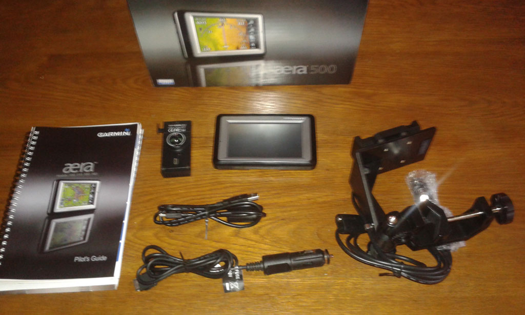 Garmin Aera 500 gps, with yoke mount, automotive friction mount, 12V power cord, battery, usb cord, manuals. Very good condition.