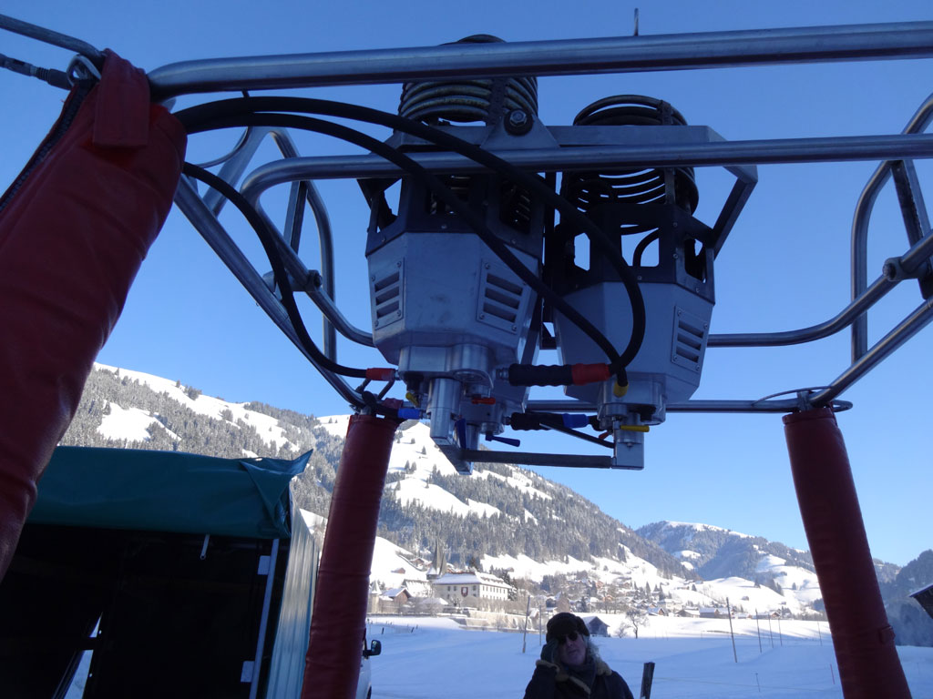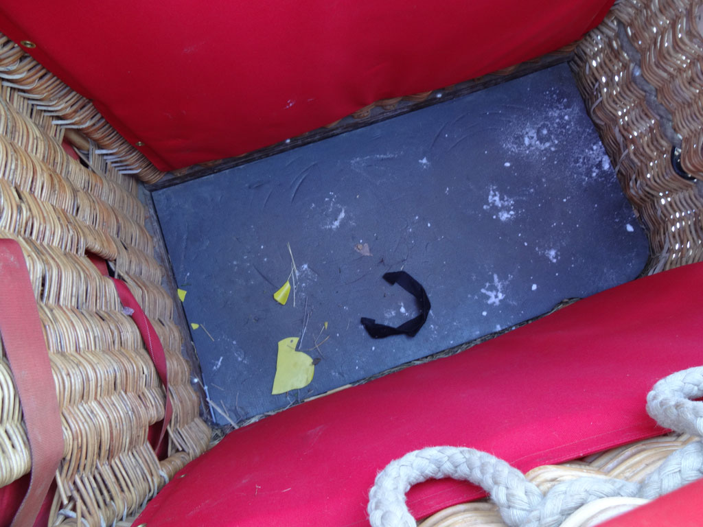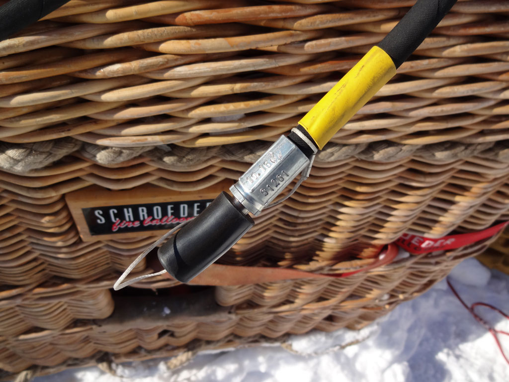 Schroeder VII basket, built 2007, 213 flights, 221 hrs. Red leather top rim, cushion floor, side wall padding, fire extinguisher, drop line. Schroeder FB6 triple burner, built 2007, 213 flights, 221 hrs. Hoses replaced in 2013. Vapour pilot lights, height adjustable frame, REGO fittings.