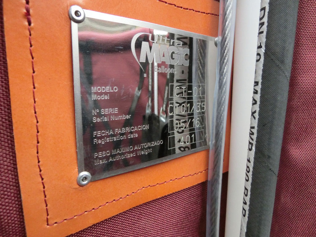 Ultramagic Tekno CT-01 basket, built 05/2016, 2 flights only. 1.0m x 0.80m. 1.10m high. Weight 35 kg. Cushion floor, basket cover, storage bags and removable basket protection. With Ultramagic Power Plus Sport single burner, built 05/2016, 2 flights only. REGO fittings, liquid pilot lights.
