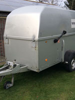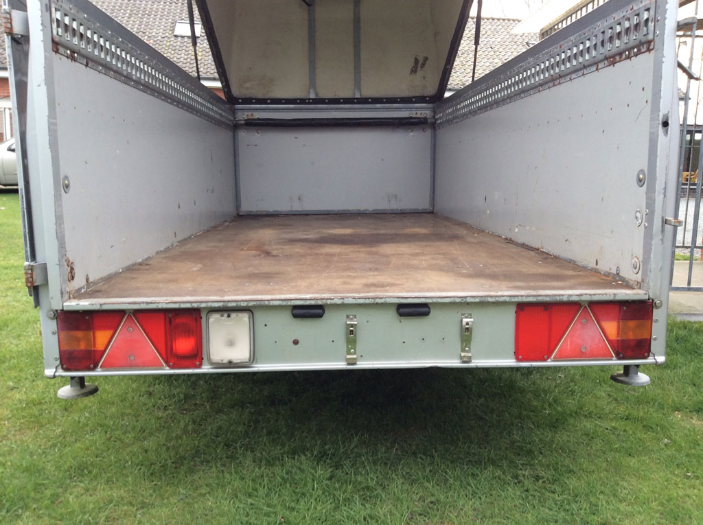 3.0m single axle Westfalia trailer, high side panels. Maximum weight 1400 kg. Spare wheel, led side lights, inside lighting, reversing light, multi pin connector, attachment rails all around the inside, extra lock for the hood on the side. Tyres are good, artwork can be removed. Including all paperwork. Used but in good condition.