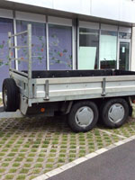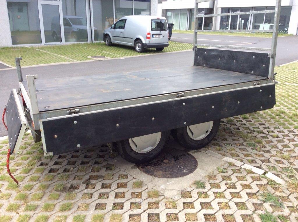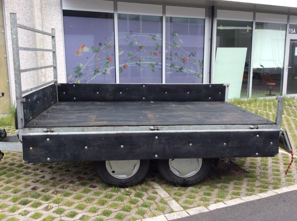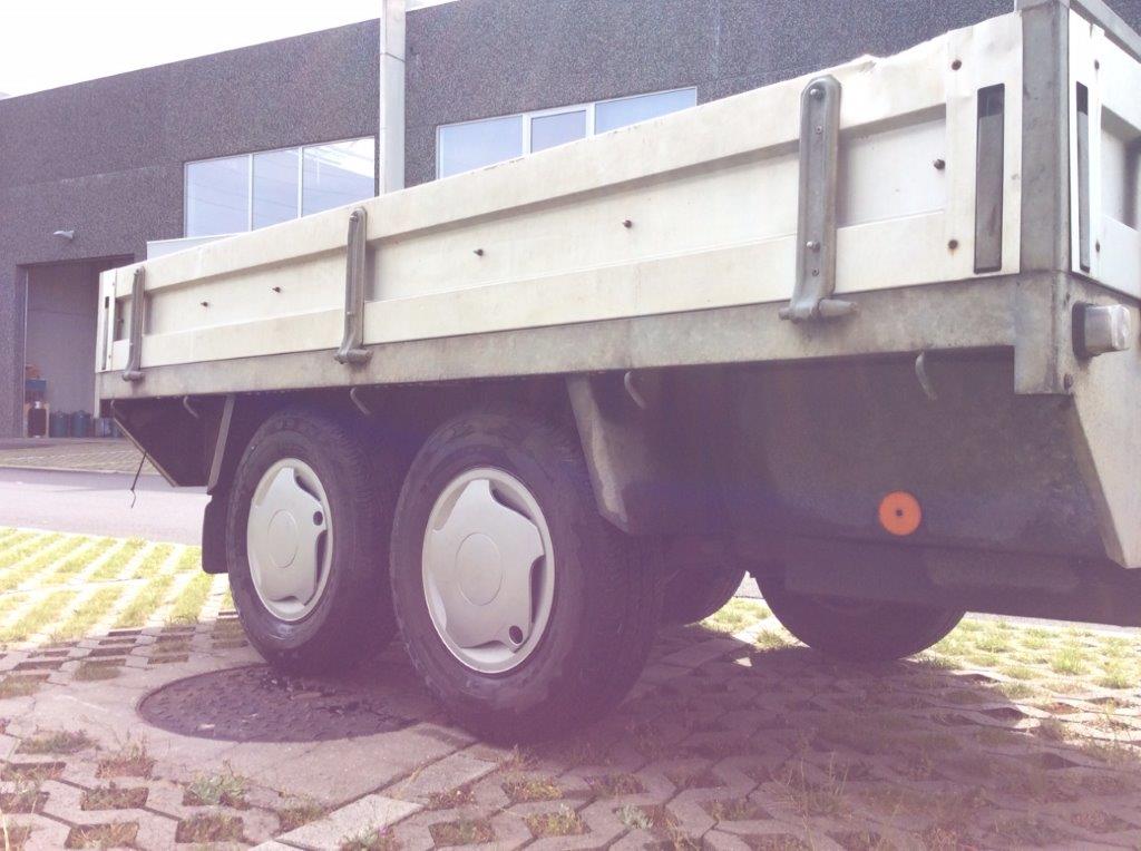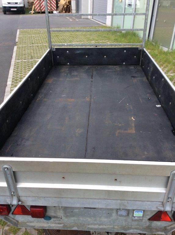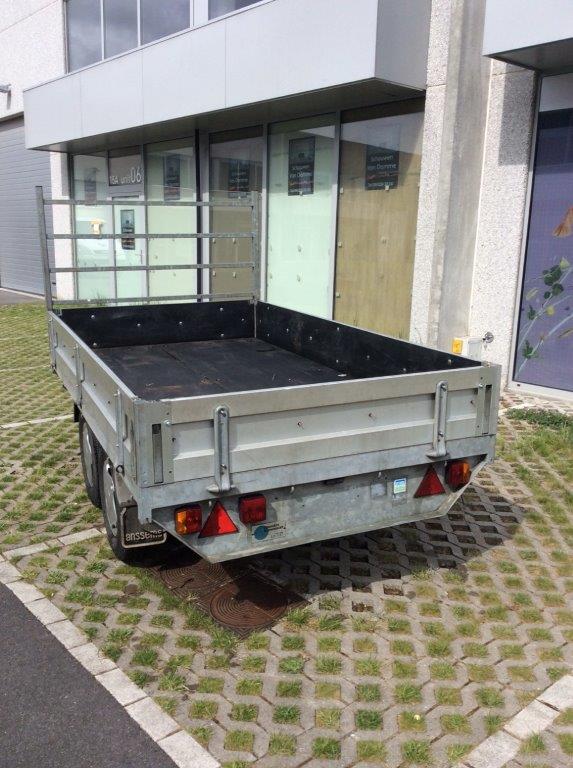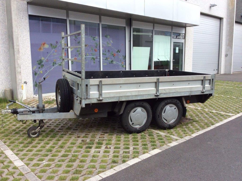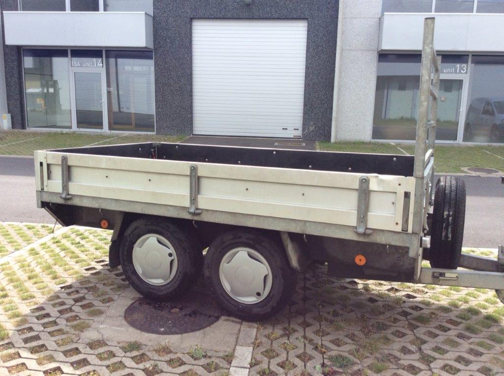 Anssems tandem axle trailer, heavy duty model with very strong chassis and components. Loading area dimensions 2.70m x 1.50m. High ground clearance. Spare wheel, removable sides. Protective rubber interior to avoid damage to equipment. MTM 2700 kg, empty weight 560 kg. Good brakes and tires. Technical inspection without any remarks. All documents including certificate of conformity included. Immediately available.