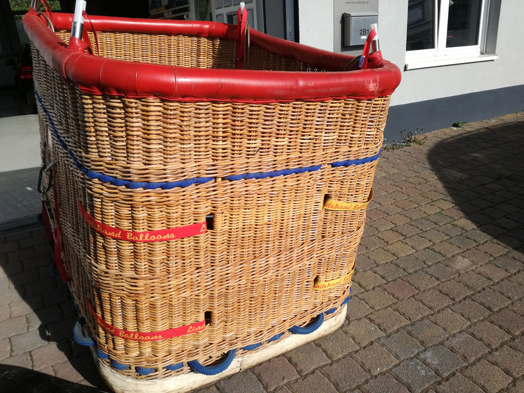 Lindstrand size 11 basket, built 02/2002, 1.65m x 1.22m. Lindstrand LBL Jetstream burner (BU-008-A-002), REGO fittings, hoses replaced in 09/2013. All in good condition. Last inspection August 2016, only flown once since. Located in Koblenz/Plaidt (Germany).