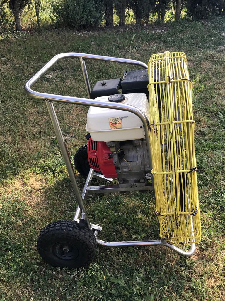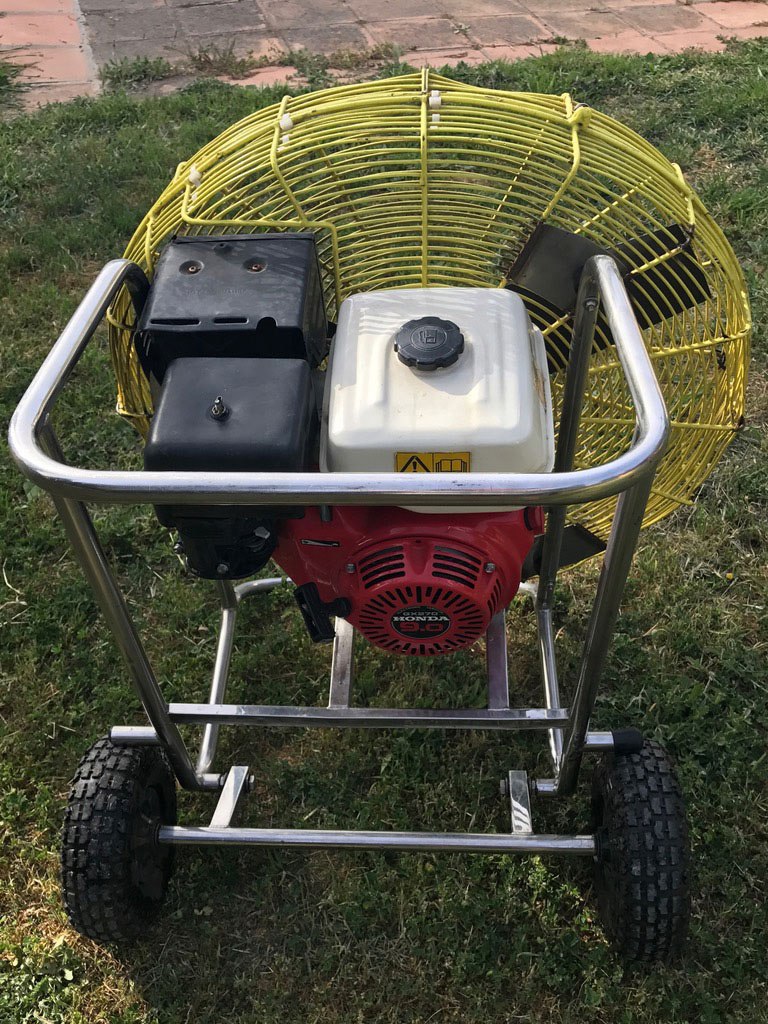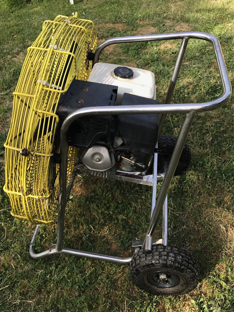 9.0 HP inflation fan, stainless steel flip wheel frame, yellow cage. Powerful and totally reliable, regularly serviced. Prop upgraded to Ultramagic 3-blade propeller. Fan currently located in Spain, can assist with shipping.