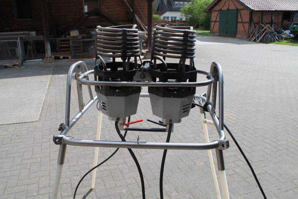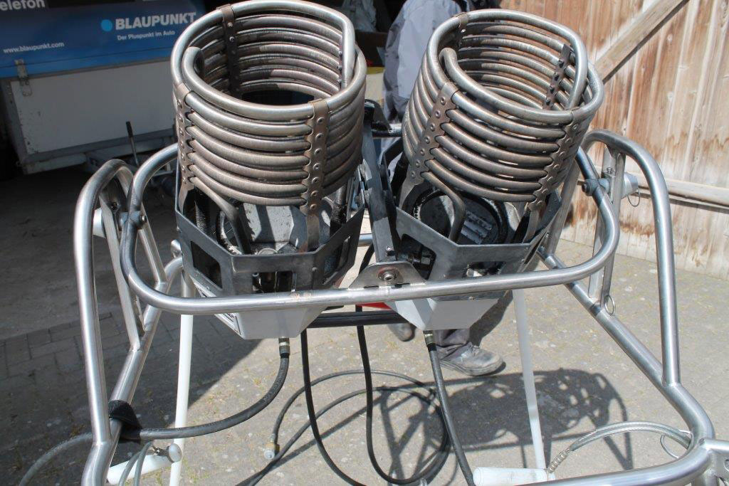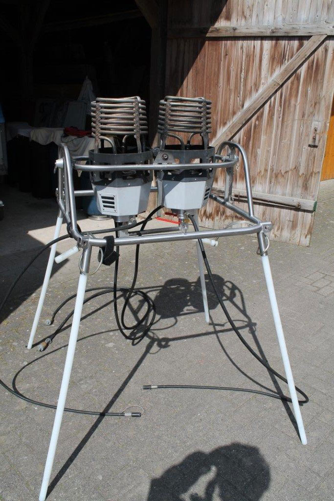 Schroeder FB6 double burner, built 2000, REGO fittings, vapour pilot lights, height adjustable frame. In very good condition.