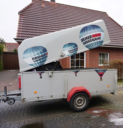 D-OBLB, Cameron Z-140, built 2002, 407 flights, 530 hrs. No hyperlast. RDS, turning vents. Cameron CB303L basket, built 1997, approximately 500 flights, 630 hrs. Black leather top rim, cushion floor, side wall padding, fire extinguisher, drop line. Inside dimensions 1.75m x 1.10m. Outside dimensions 1.80m x 1.15m. Inner height 1.25m. Cameron CB2075 MK4 Shadow double burner, built 2002, 407 flights, 530 hrs, REGO fittings, vapour pilot lights. Hoses replaced 4 years ago. 2x Cameron CB2088 cylinder, built 02/2001, 407 flights, 530 hrs. 1x Master, 1x slave. REGO fitting, wheel valve. Red cover. PRV/PPT/INT valid until 03/2021. Cameron CB426 cylinder, built 04/1996, Master, REGO fitting, wheel valve. Red cover. PRV/PPT/INT valid until 03/2026. Cameron CB599 cylinder, built 04/1996, Master, REGO fitting, wheel valve. Red cover. PRV/PPT/INT valid until 03/2026. 8.0 HP inflation fan, flip wheel stainless steel frame, carbon fiber propeller. Single axle 3.0m Westfalia trailer, built 1998, max load 1400 kg. ARC expired.