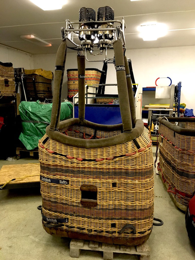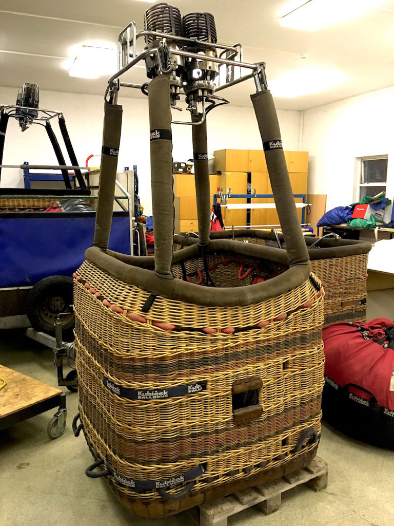 Kubicek K12 Aristocrat basket, built 2007. 1.16m x 1.16m. Weight 85kg. Suede top rim, side wall padding, cushion floor. Fully equipped with pockets (for fire extinguisher, fire blanket, first aid kit, drop line), one glove pocket. Very solid and stiff, in overall great shape. Will be sold with Kubicek Komet, Komet Plus, H3D or HB2 burner if desired. Compatible with Ignis burner as well (not available).
