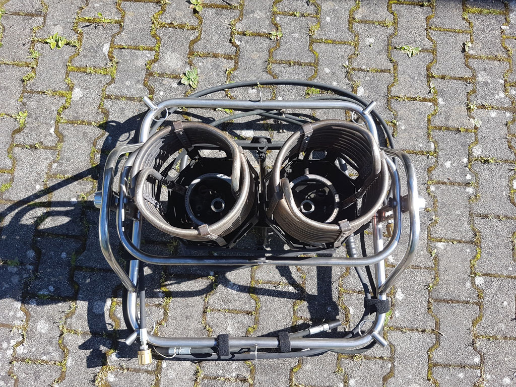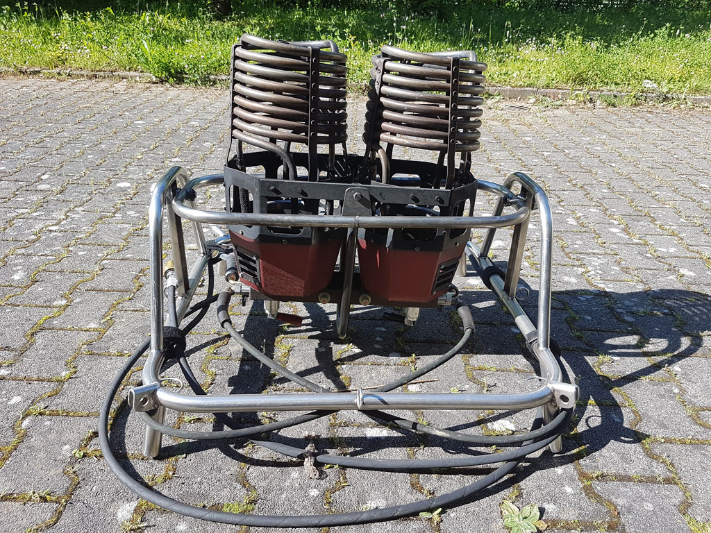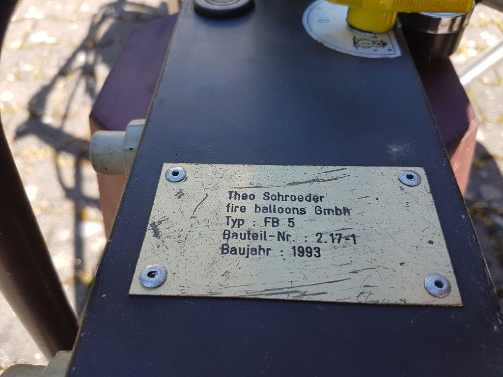 Schroeder FB5 double burner, built 1993, 245 hrs. Hoses replaced in 02/2013. Vapour pilot lights, REGO fittings. TEMA fittings on vapour hoses. Height adjustable frame. Comes with EASA Form 1.