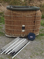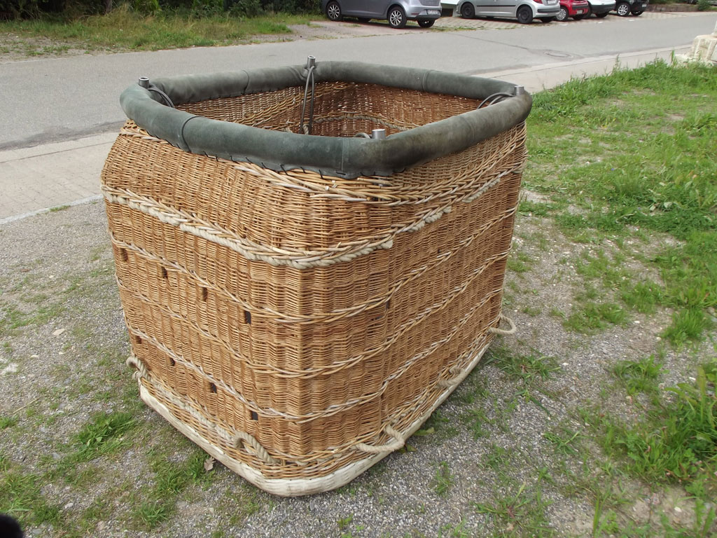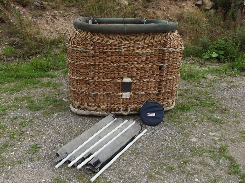 Cameron 90/105 Aristocrat basket, age and hours unknown. Brown suede top rim, including 4 poles and 4 covers.