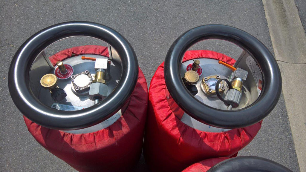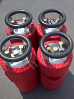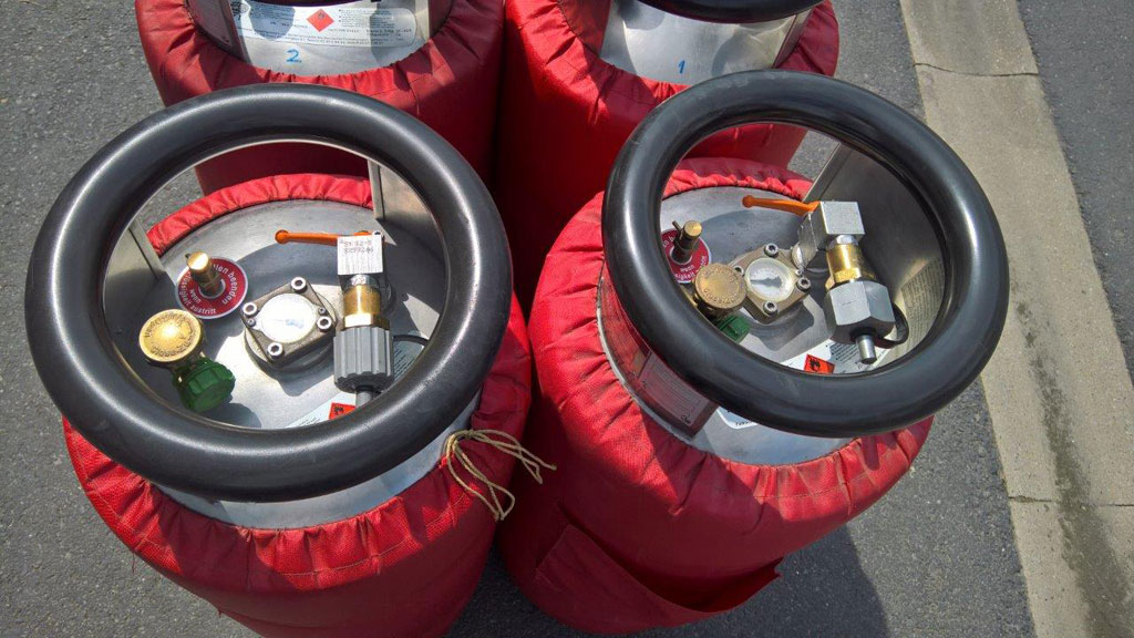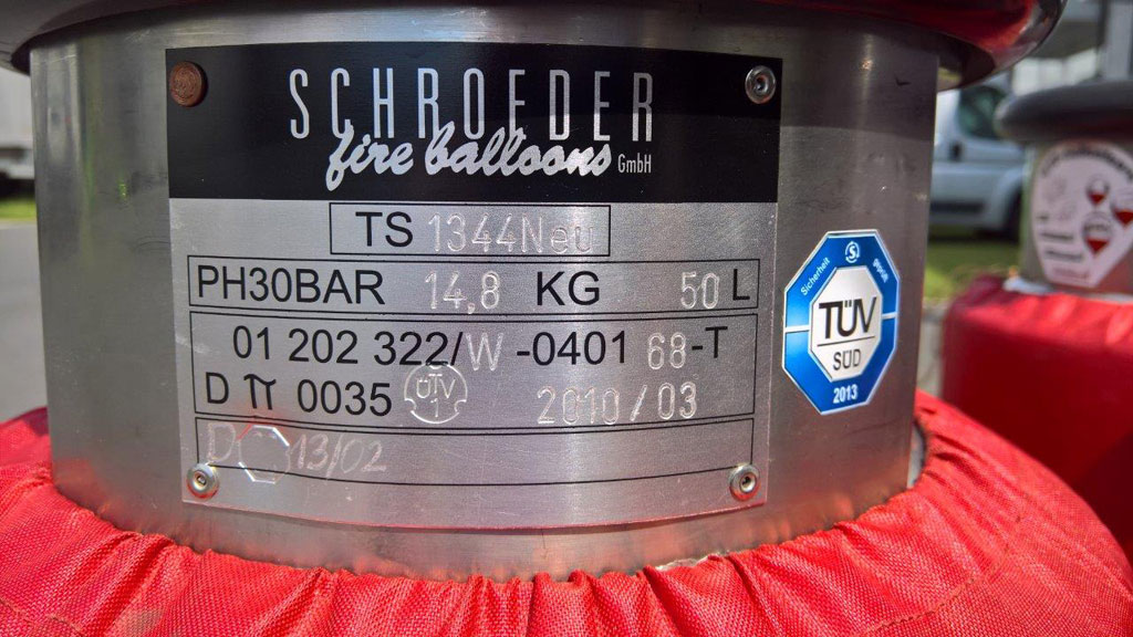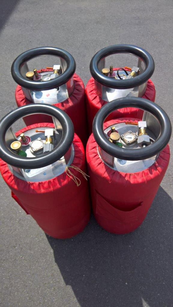 4x Schroeder VA50 cylinder, red cover, REGO fittings, quick shut off valves. Slave but with PRV built in vapour-ready valve. Rubber top rings. PRV/PPT/INT valid until 2023. In perfect condition, immediately available.