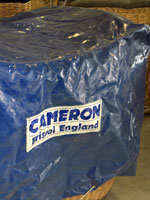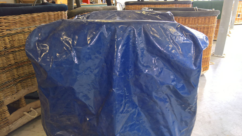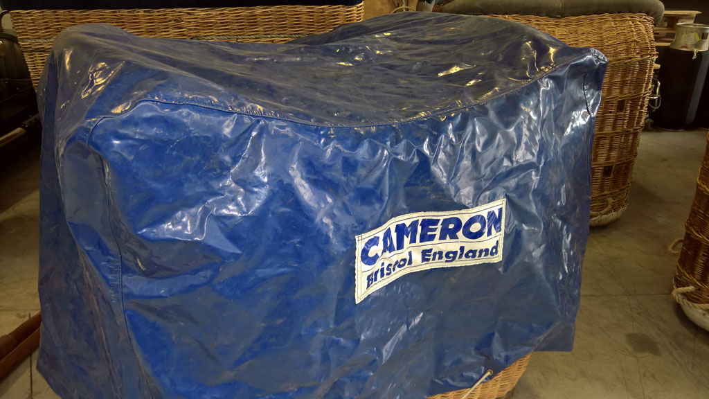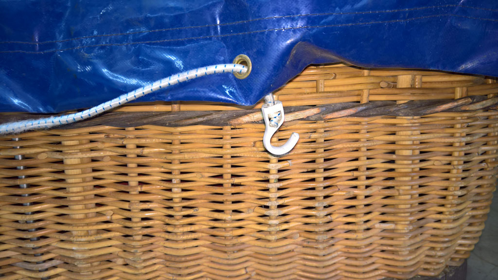 Cameron basket cover for baskets up to 77/90, blue PVC, with hooks for attaching it to outside basket handles at the bottom. Perfect condition. Immediately available.
