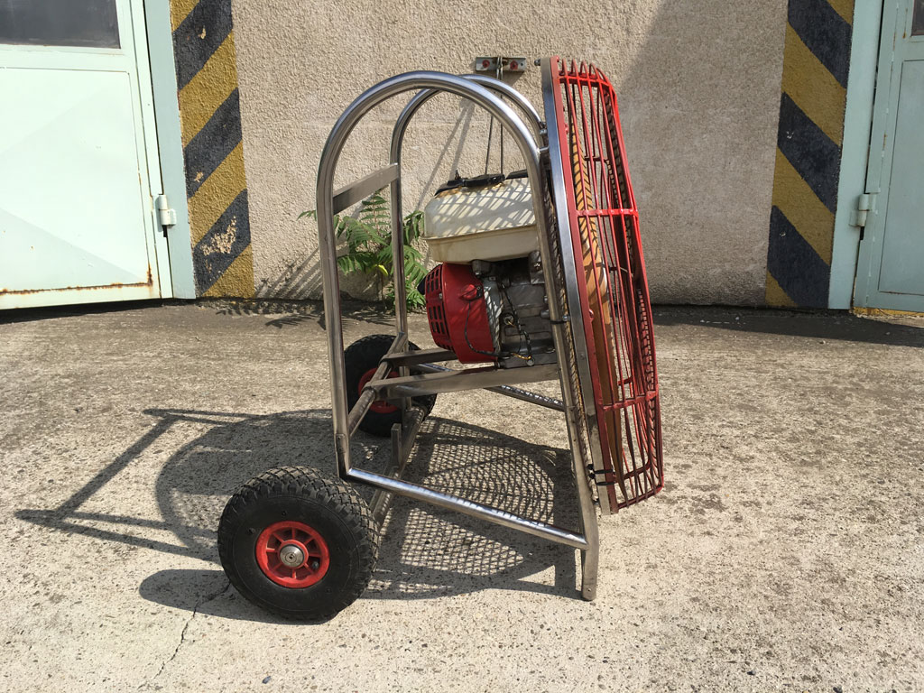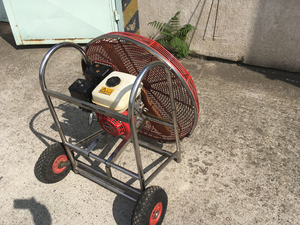 5.5 HP inflation fan, stainless steel frame, wooden propeller, Honda engine. Serviced in 2017. In good condition.