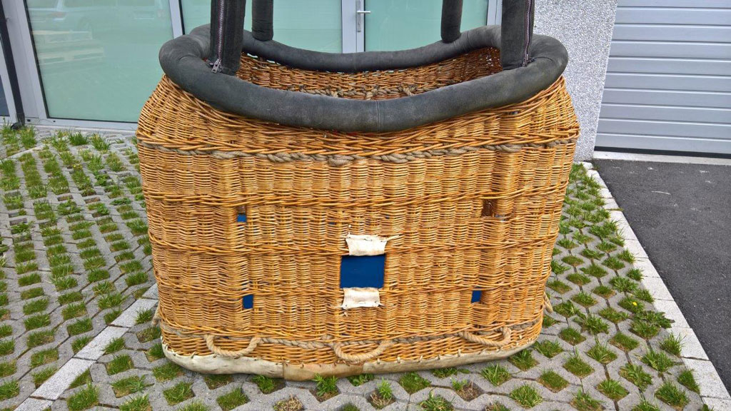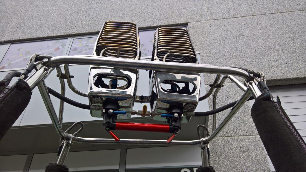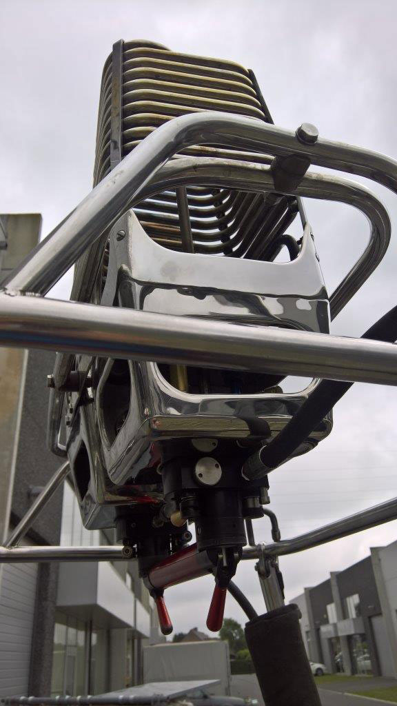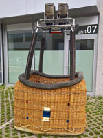 Cameron CB300-4A 90/105 basket, built 01/2001, 388 flights. Navy suede top rim, first aid kit, fire extinguisher, document bag, 4 karabiners. Double Cameron Stealth burner, built 01/2001, 388 flights (current coil type, not the christmas tree model) with liquid pilot lights, REGO fittings. In flexi corner frame. Hoses dated 09/2010. In good condition. Comes with fresh EASA Form 1. Immediately available.