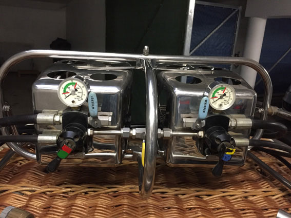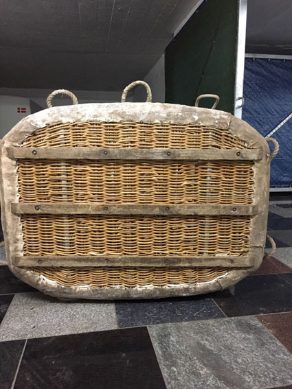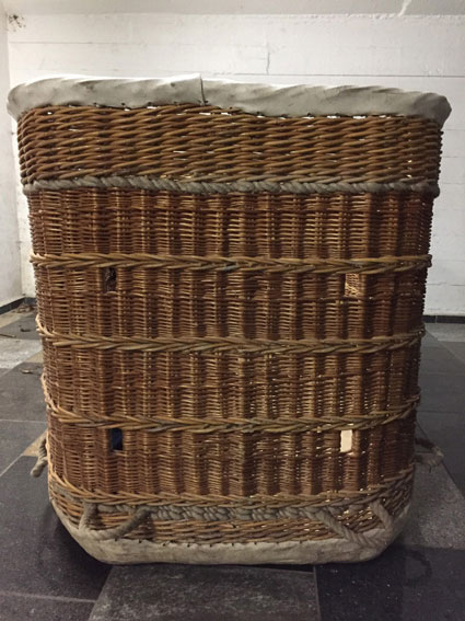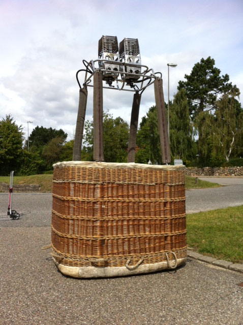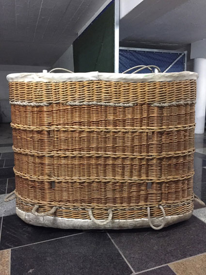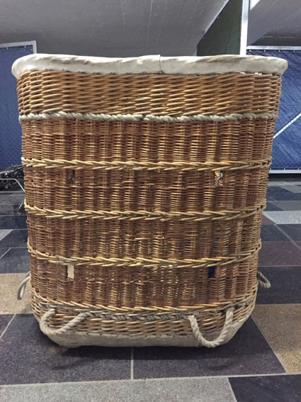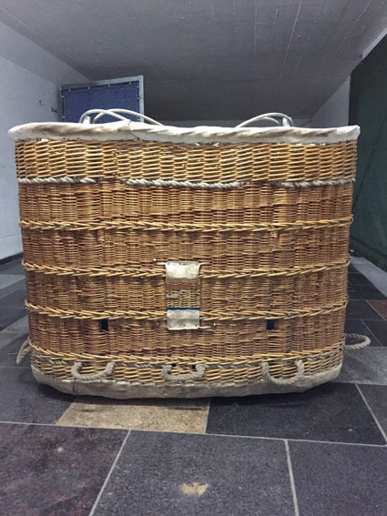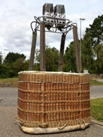 Cameron 77/84 basket, built 1990, 160 hrs. 1.40 x 1.07m, 1.10m high. White raw hide top rim, including 4 poles, 4 covers, 4 karabiners. With Cameron MK4 Super double burner, built 1990, 160 hrs, vapour pilot lights, REGO fittings.