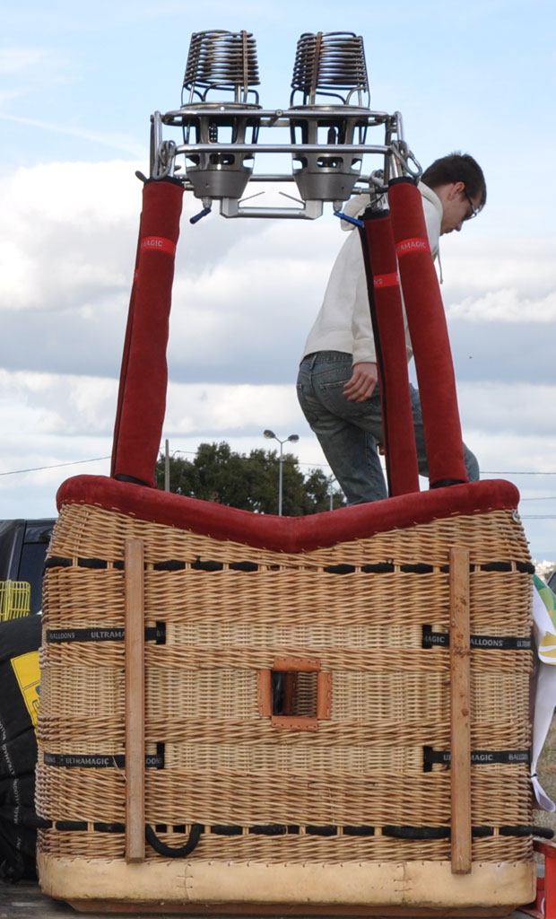 Ultramagic C3 swept top basket, built 2009, 92 flights, 103 hrs. 1.30m x 1.10m. Red suede top rim, fire extinguisher, drop line, first aid kit. Hardwood runners on one side. Ultramagic MK21 double burner, built 2009, 92 flights, 103 hrs. Liquid pilot lights, REGO fittings. Mostly flown solo, only used for pleasure flights. One owner since new. Currently located in Spain, happy to assist with transportation.