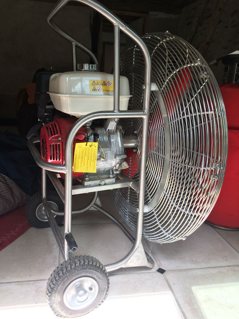 9.0 HP inflation fan, built 2011, carbon fiber propeller, stainless steel frame. In as new condition. Price when new: € 2.110 (December 2011). Immediately available.