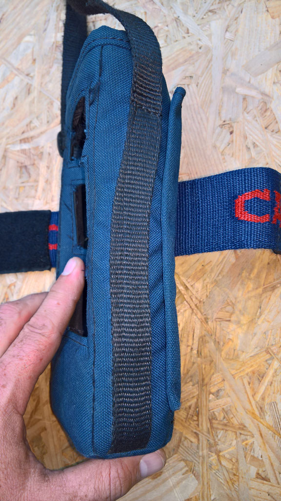 Icom pocket with velcro attachment, made by Cameron Balloons. Navy cordura with foam, with carrying strap, and storage space for antenna. Immediately available.