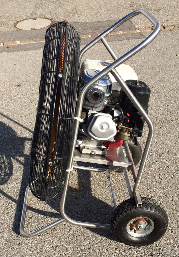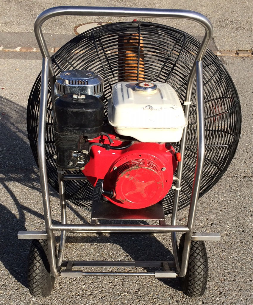 8.0 HP inflation fan, honda engine, stainless steel flip wheel frame, wooden propeller. In good shape.