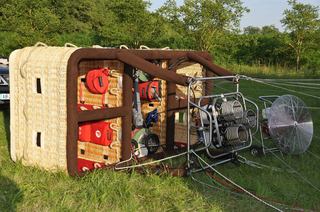 F-GUPK, Schroeder Fire Balloons G 60/24, built 2012, 99 flights, 107 hrs. 6.000 m3 / 210.000 ft3. Hyperlast top, smart vent, turning vents. Schroeder IX double T basket for pilot + 10 passengers, built 2012, 99 flights, 107 hrs. Brown suede top rim, side wall padding, fire extinguisher, drop line, pilot restraint harness. Schroeder FB6 triple burner, built 2012, 99 flights, 107 hrs. Vapour pilot lights, REGO fittings, height adjustable frame. 4x Schroeder VA70 cylinders, built 2012, 99 flights, 107 hrs. Green cover, REGO fittings, PRV/PPT/INT valid until 2022. 13.0 HP inflation fan with carbon fiber propeller. One owner since new, in excellent condition. Comes with valid ARC.