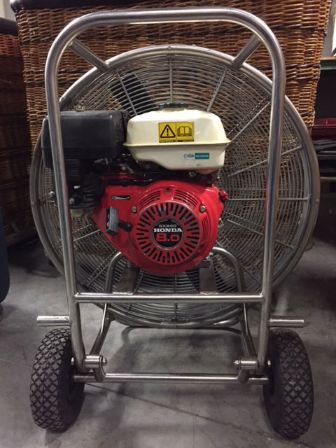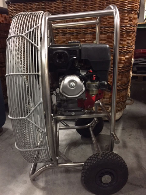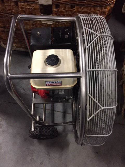 8.0 HP inflation fan, stainless steel flip wheel frame, with brand new original Cameron carbon fiber propeller. Fully serviced, in very good condition, no cracks in frame. Immediately available.