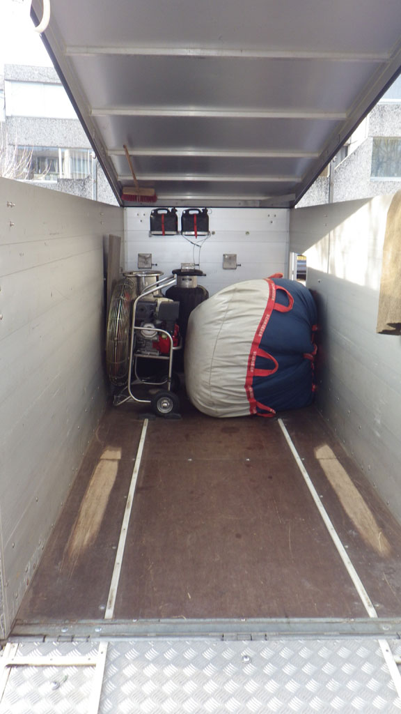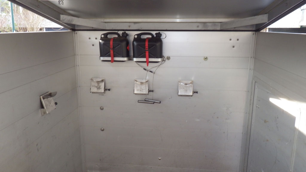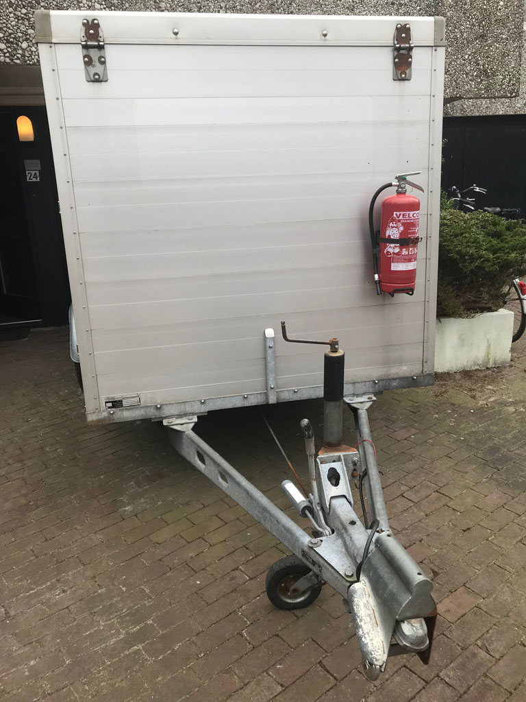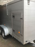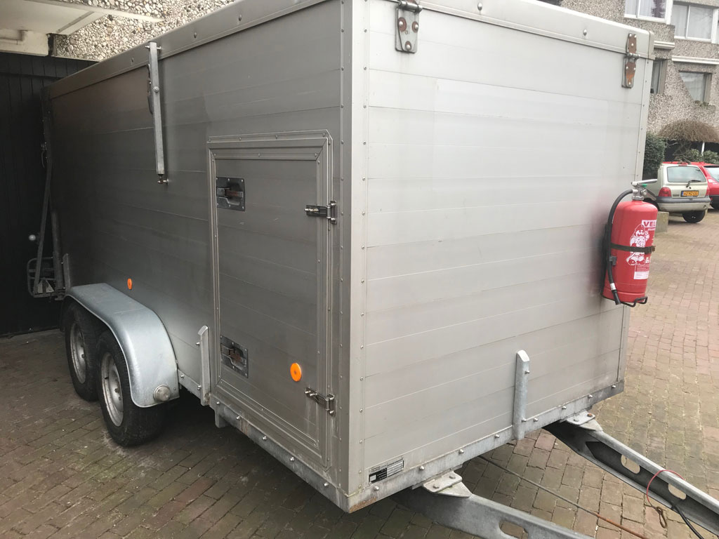 Hoffmann tandem axle closed aluminium trailer, built 2002, inside dimensions 1.60m x 1.60m x 4.00m. Max load 2000 kg.