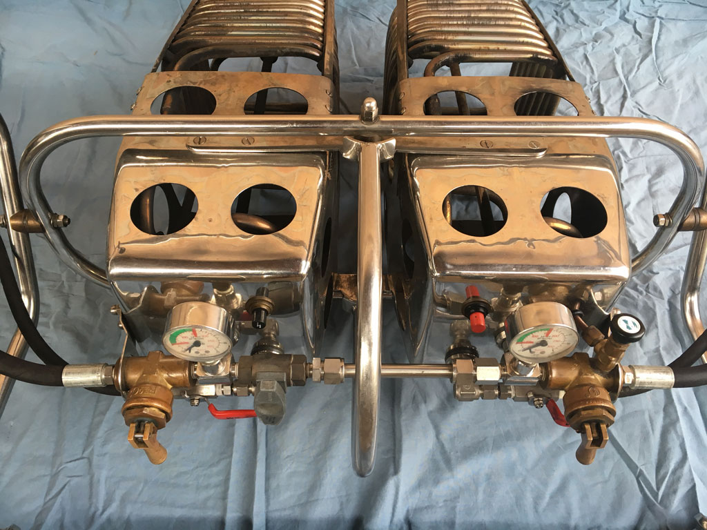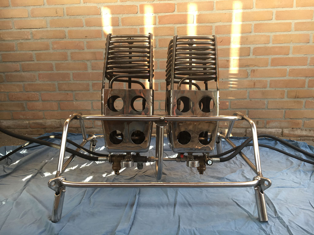 Cameron MK4 double burner, vapour pilot lights, REGO fittings, Bonanno brass valves, 1 whisper burner. In very good working condition, with straight coils. In standard frame, with nylon corner bushings, flexible corners. Always taken care off and stored in a good way. Good working piezo igniters. Ready to fly. Immediately available.