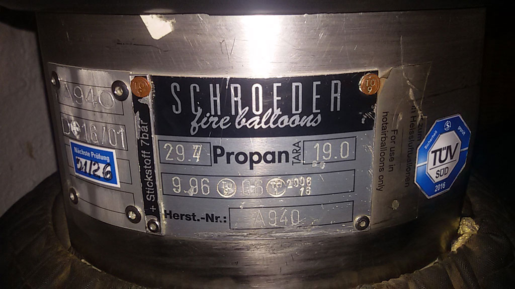 D-OKTP, Lindstrand LBL 150A, built 2004, 500 flights, 520 hrs. Hyperlast top, RDS, turning vents. Lindstrand LBL basket, built 1998, 450 flights, 500 hrs. Red suede top rim, cushion floor, fire extinguisher, drop line. Lindstrand LBL Jetstream series 2 double burner, built 1998, 450 flights, 500 hrs. Liquid pilot lights, REGO fittings, hoses replaced in 2015. 3x Schroeder VA70 cylinders, built 1996, 450 flights, 500 hrs. Usable volume 60 liter. Slave, QSO valve, REGO fitting, black cover. PRV/PPT/INT valid until 2026. 1x Schoeder VA50 cylinder, usable volume 40 liter. Slave, QSO valve, REGO fitting, blue cover, PRV/PPT/INT valid until 2028. 11.0 HP Honda inflation fan (Lindstrand), built 1998, stainless steel flip wheel frame, wooden propeller. Spindelberger Cobra single axle trailer, built 1996. Inside dimensions 4.00m x 1.70m. Max load 1000 kg. Flytec 3040. ARC valid.
