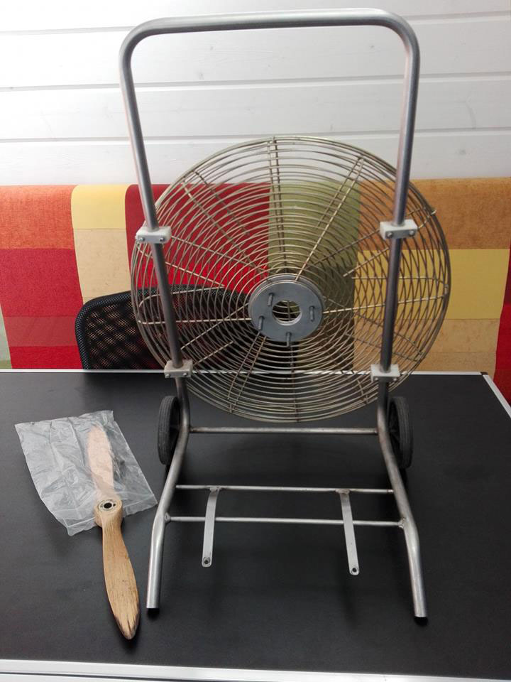 Parts of Boelling inflation fan: frame and wooden propeller.