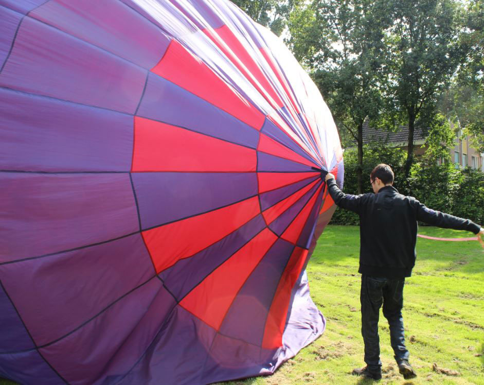125m3 model balloon envelope, made of fabric of an old hot air balloon. Red nomex, no scoop included. Very suitable envelope to learn to fly a model balloon.