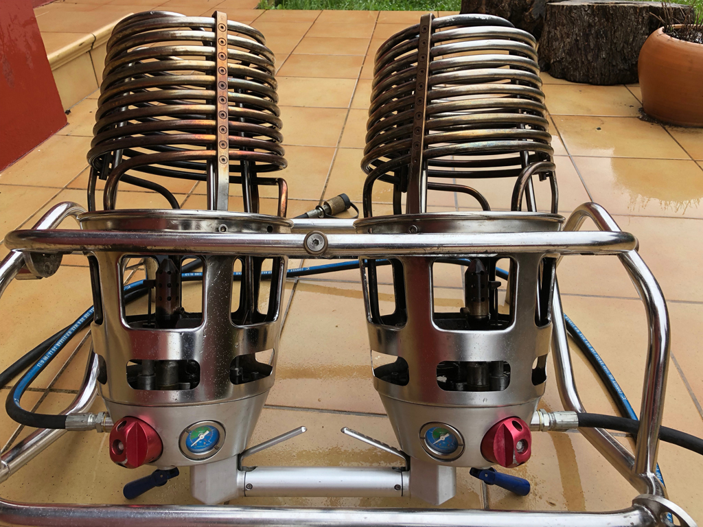 Ultramagic Mk21 double burner, built 2008, 92 flights, 103 hrs. Liquid pilot lights, REGO fittings. Hoses replaced 5 years ago. No burner frame included. Regularly serviced by Ultramagic, in excellent condition. Currently stored in Spain but can help to arrange shipping if required.