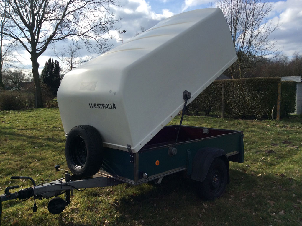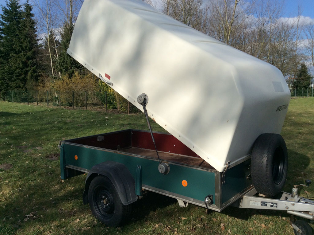 2.5m single axle Westfalia trailer, new side walls and stainless steel frame. Complete maintenance carried out, new brakes. Max weight 1.200 kg. Small repair done to hood, but no leaks. All original documents are available. In general good condition.