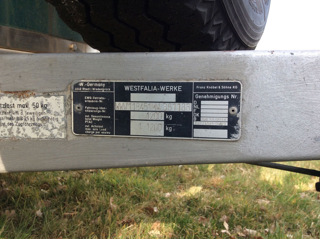 2.5m single axle Westfalia trailer