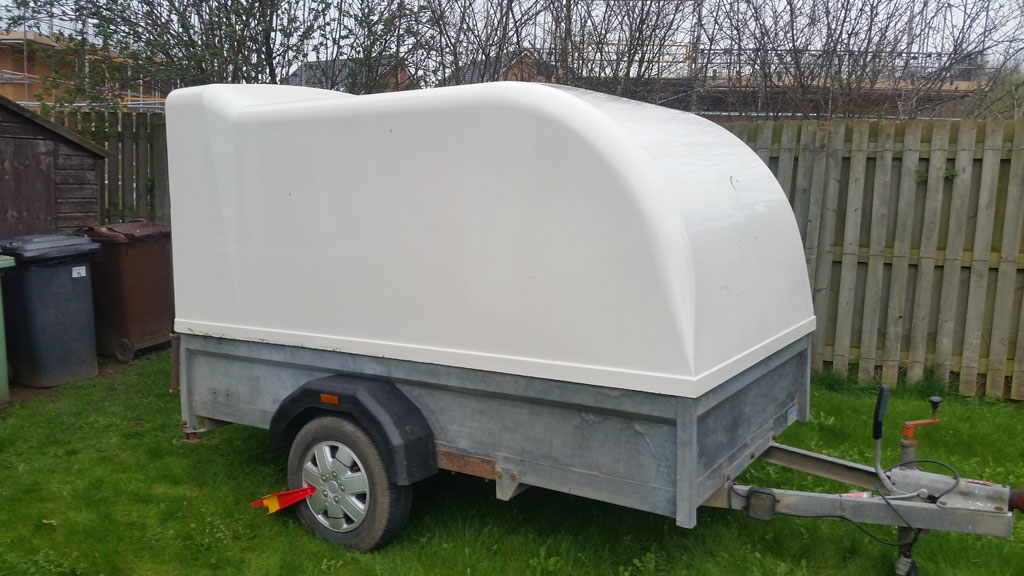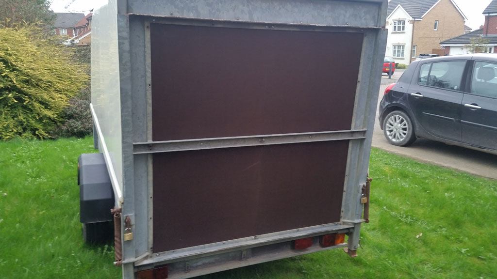 Staffordshire single axle 2.5m trailer with fixed fiberglass top, ramp door. New floor and mudguards have been fitted. Slight cracks in front bud no leaks. Max load 1200 kg.