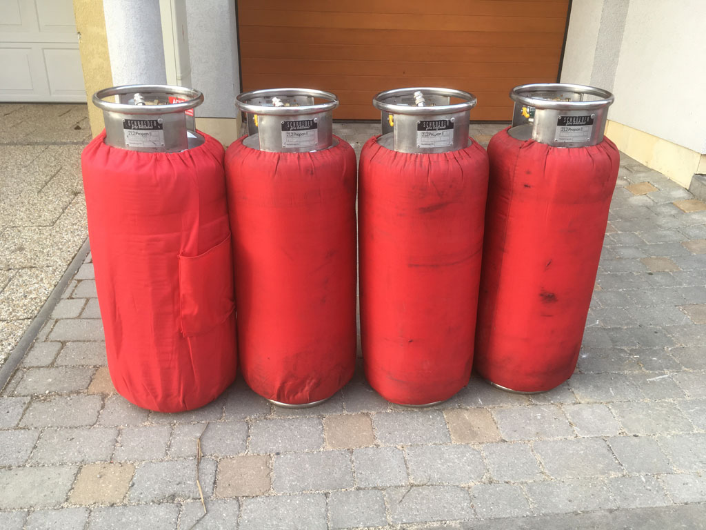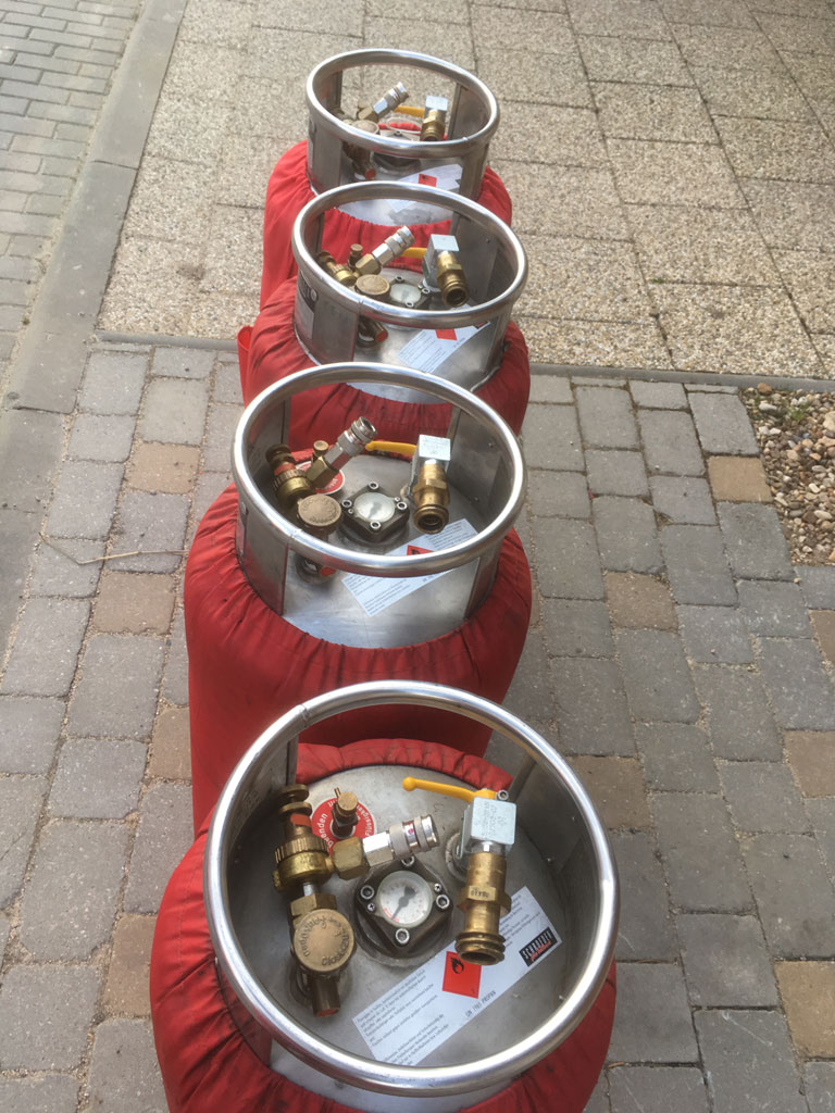4x Schroeder VA50 cylinder, built 1989, master, quick shut off valve, REGO fitting, red cover. PRV/PPT/INT valid until 03/2022.