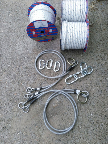 For rent: Complete tether kit, for balloons up to 180.000 ft3. Including 50m lines, v-bridles with rings and karabiners.
