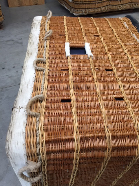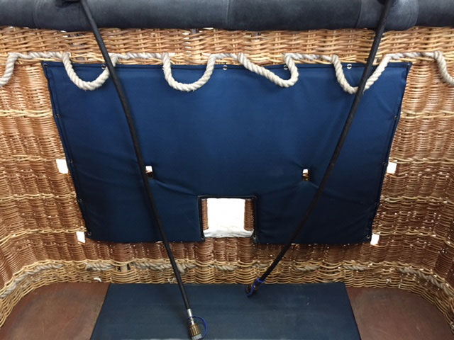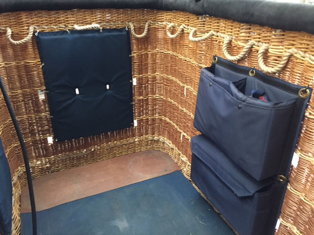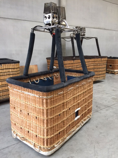 Cameron 120 open (CB303L) basket, 70 hrs. Navy suede top rim, side wall padding on one side plus short side, cushion floor, big storage bags, fire extinguisher pocket. Inner height 1.10m (1.17m up to top of suede top rim, so fits all big cylinders). Cameron Stealth/Shadow double burner, with liquid pilot lights, REGO fittings. Gimbal block frame with fixed corners and tether lugs on both sides. Hoses dated 09/2011. Burners fully serviced, new pressure gauge gaskets, new pilot light jets and filters. Immediately available. Comes with fresh EASA Form 1.