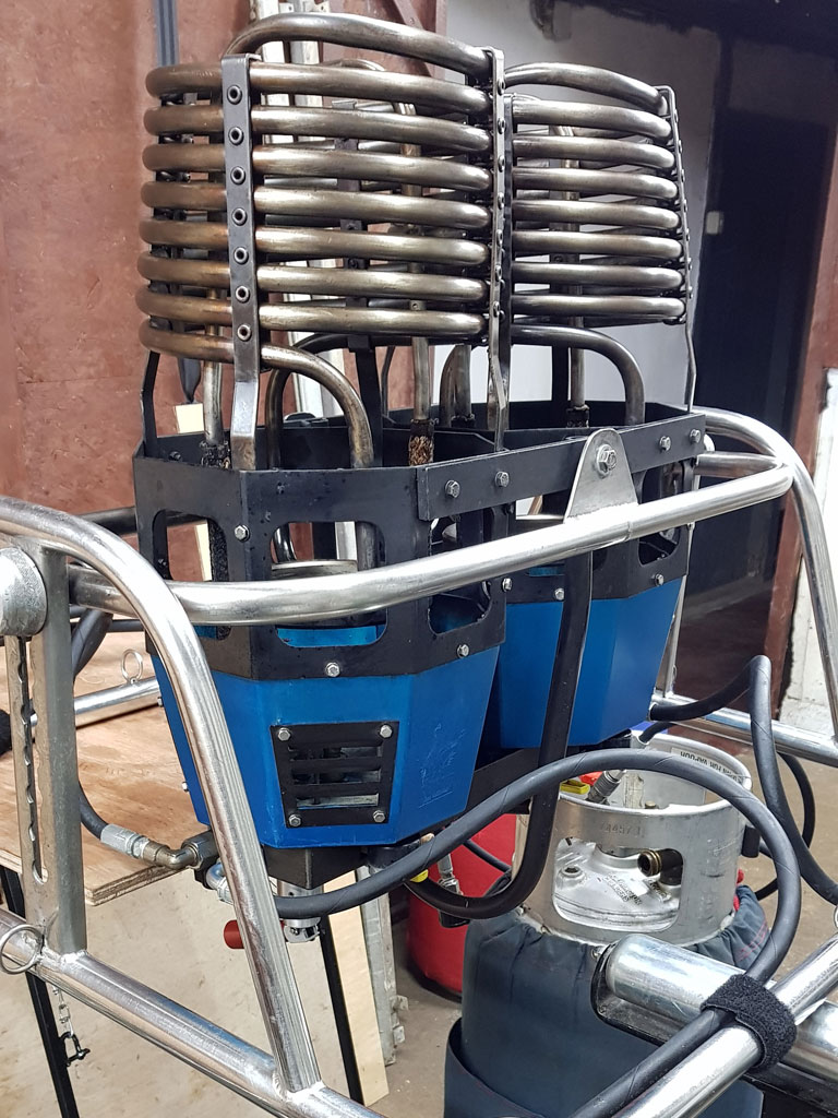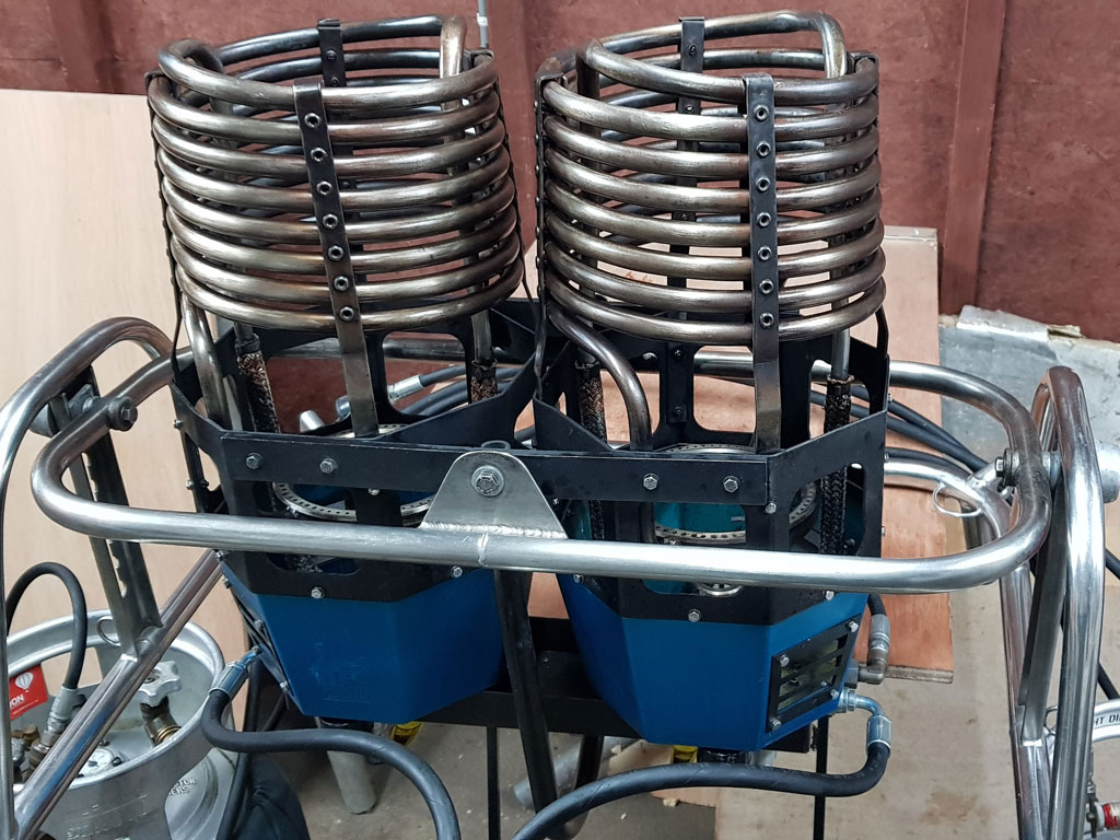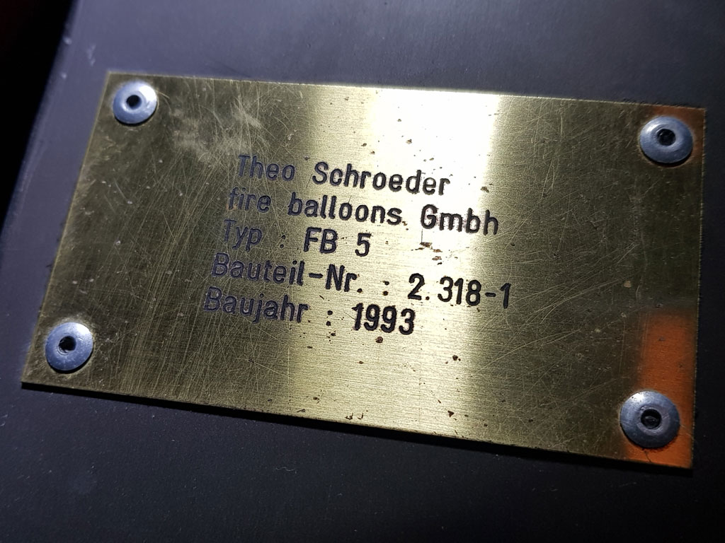 Schroeder FB5 double burner, built 1993. Vapour pilot lights, REGO fittings, Dynaquip vapour fittings. Height adjustable frame. In very good condition, serviced by Schroeder Fire Balloons in 02/2018, ready to fly.