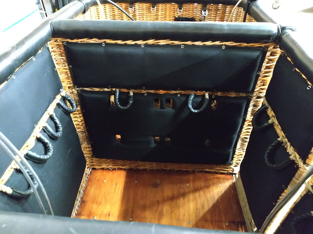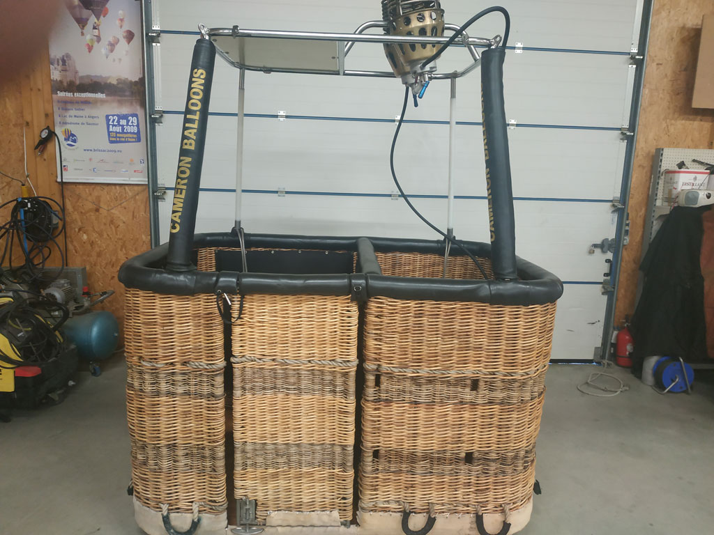 Cameron 120P Easy Access basket, CB3555, built 2014, approximately 200 hrs. Weight 154 kg. Black leather top rim, sidewall padding on all sides, embroidered pole covers, cushion floor, drop line, Kubicek basket organizer. Dimensions approximately 1.85m x 1.2m. Cameron Stratus double burner, built 2014, approximately 200 hrs. Liquid pilot lights, REGO fittings, hoses valid until 07/2023. Burner frame CB2470 with heatshield and tether lugs. 4x Stubai 2.5 tonne karabiners. Comes with fresh EASA Form 1.