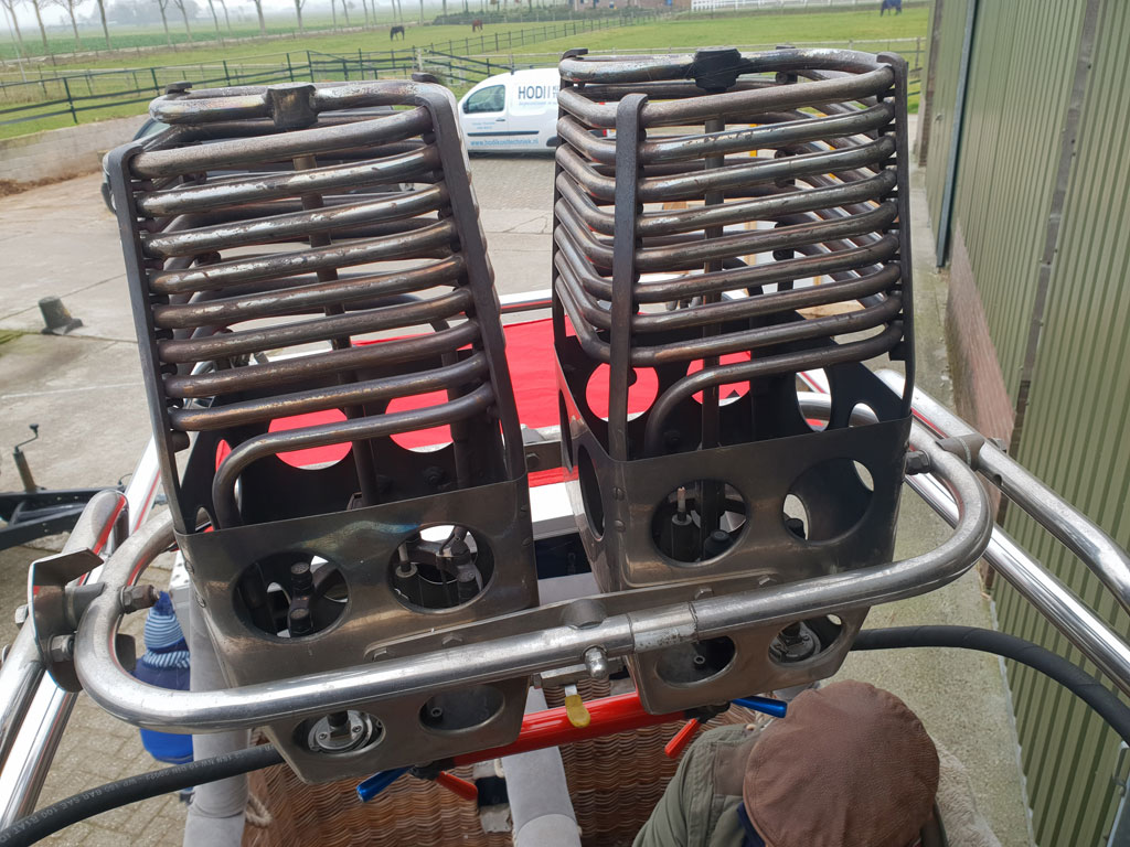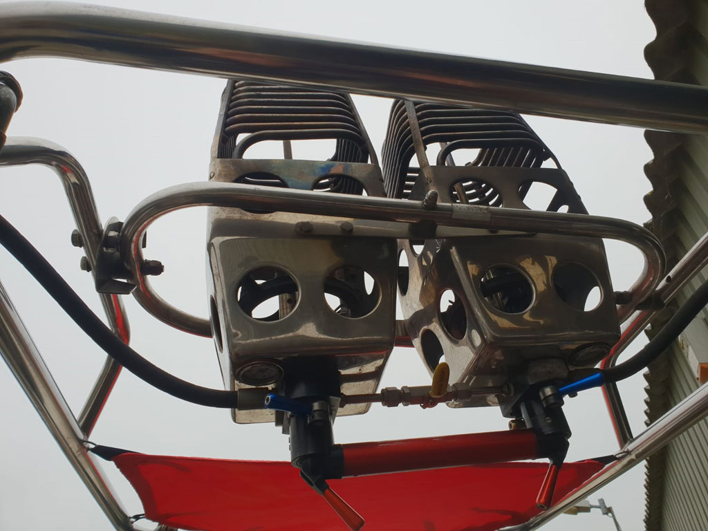 Cameron Shadow double burner, built 1994, 600 flights/hrs. Liquid pilot lights, REGO fittings. Hoses valid until 07/2019. In frame with fixed corners, for 140 T basket. In perfect condition, last inspected/tested 08/2018.