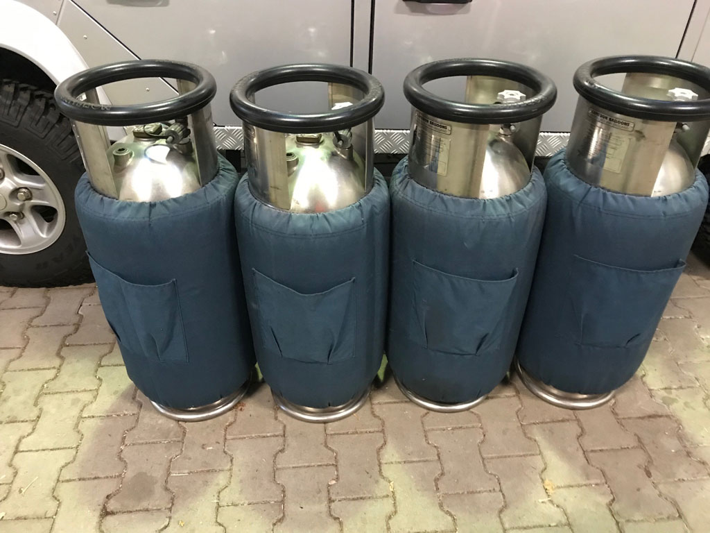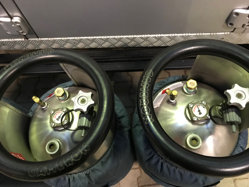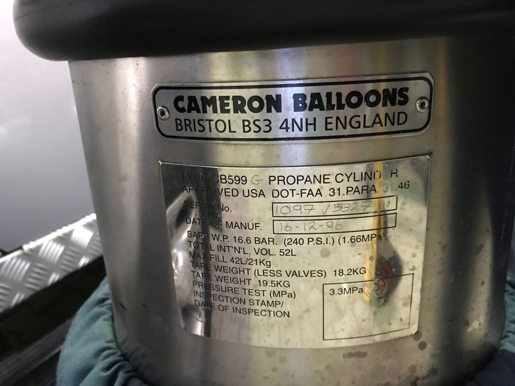 4x Cameron CB599 cylinder, built 1996, usable volume 42 liter. REGO fitting, navy cover, PRV/PPT/INT valid until 2028. Comes with EASA Form 1.