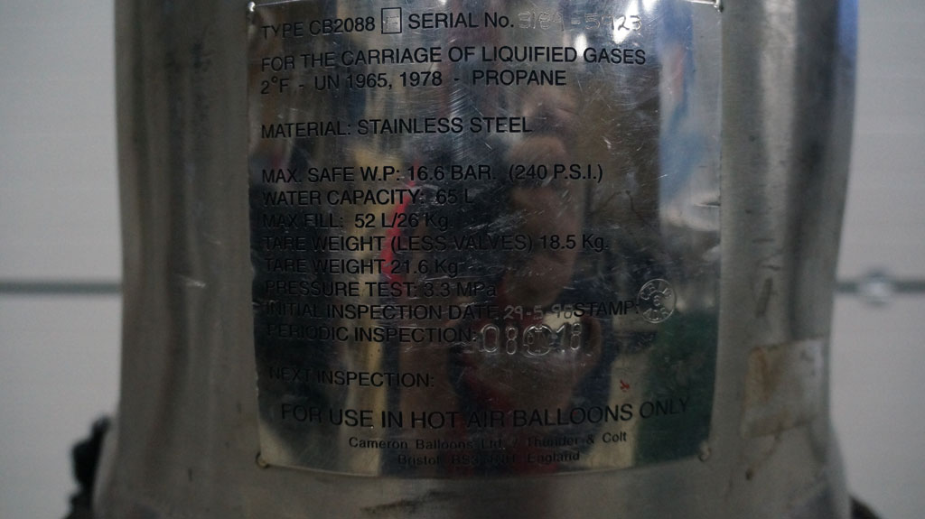 Cameron CB2088 cylinder, built 1998, quick shut off valve, TEMA fitting, black cover. In good condition. PRV/PPT/INT expired since 08/2018.