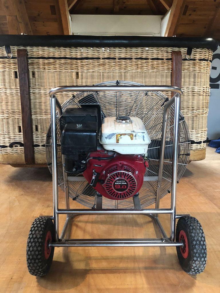 9.0 HP inflation fan, built 2008, stainless steel flip wheel frame, carbon fiber 3-blade propeller. Oil changed and new silent blocks mounted.