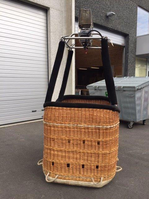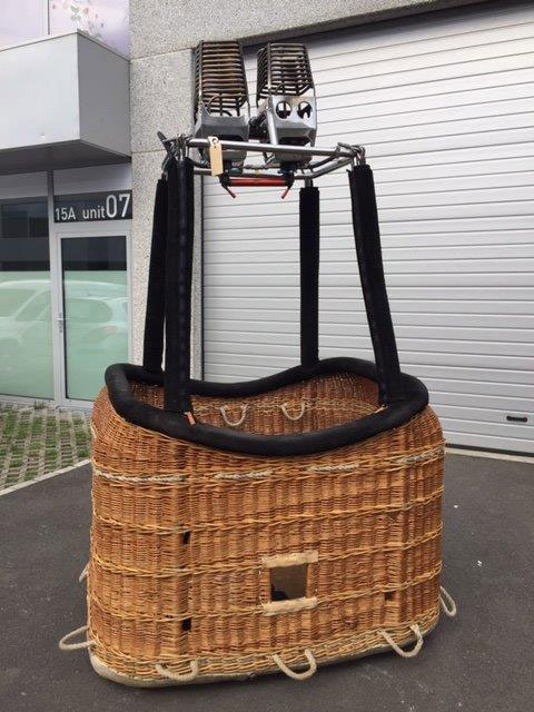 Cameron 90-105 CB300-4A basket, built 2002, 361 flights, 372 hrs. Black suede top rim. Cameron Stealth/Shadow double burner, built 2002, 361 flights, 372 hrs. Liquid pilot lights, REGO fittings, hoses dated 09/2011. Gimbal block frame. 4 karabiners. Burners fully serviced. Comes with fresh EASA Form 1. Immediately available.